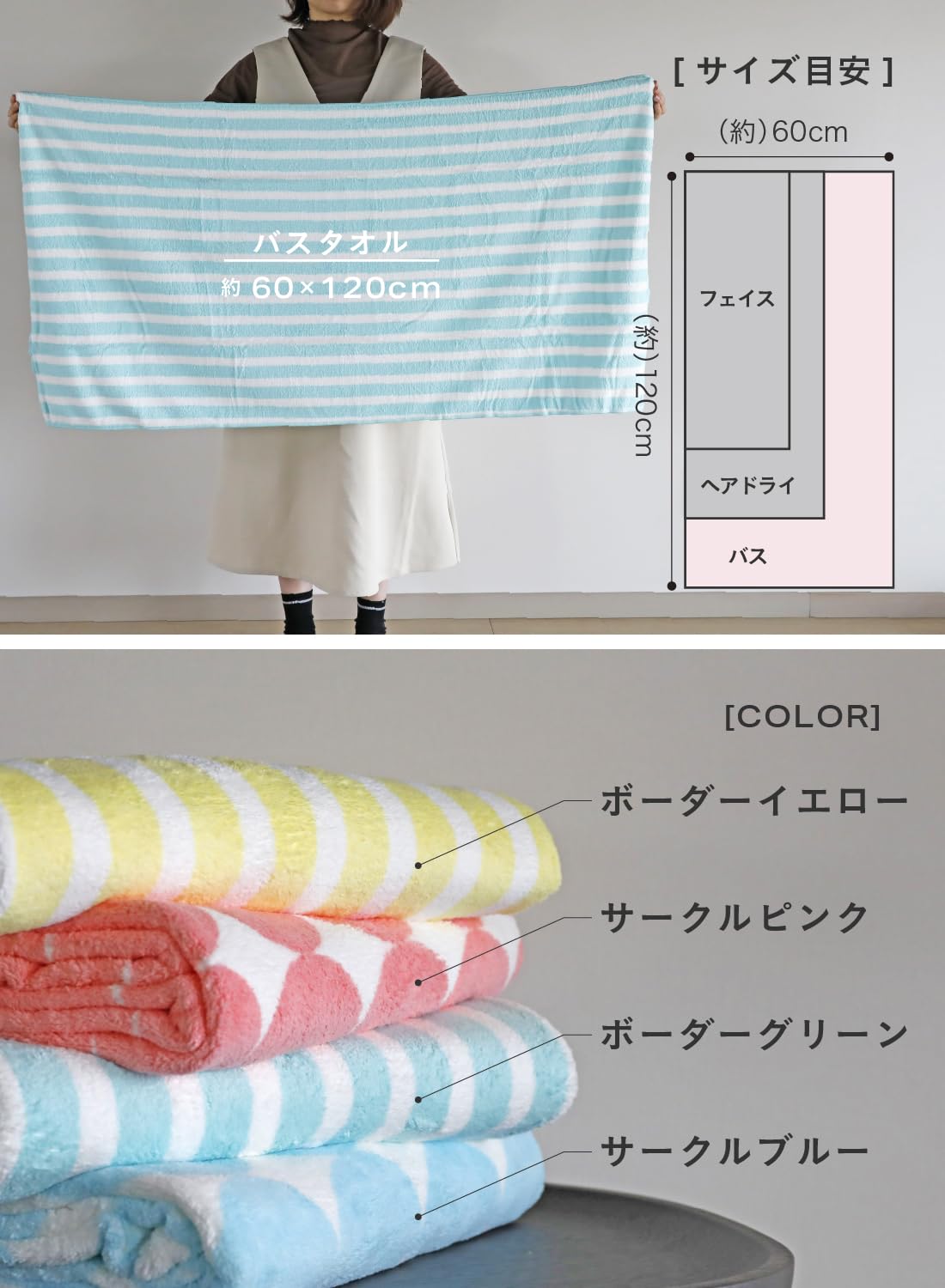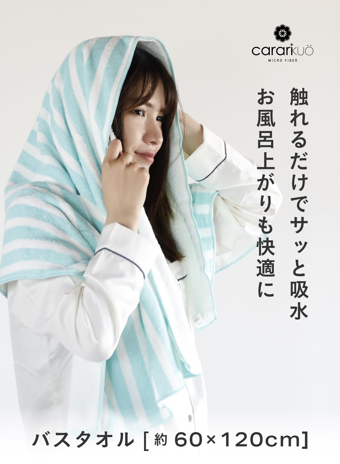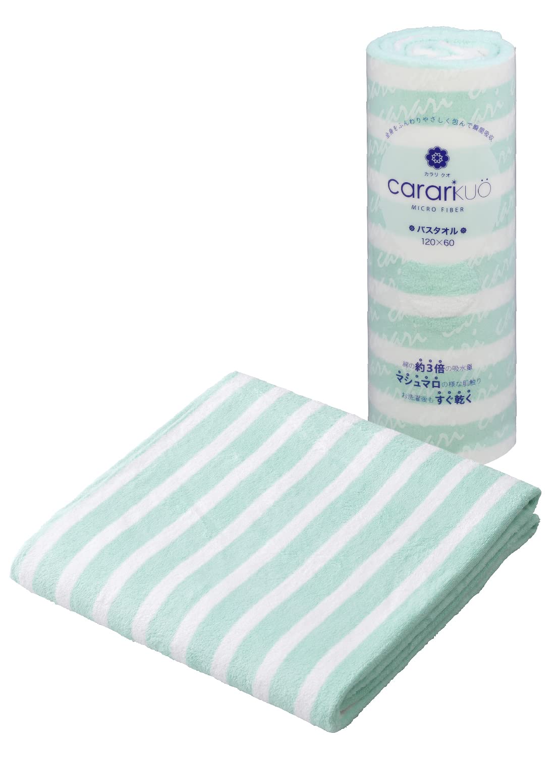 【人気】シービージャパン(CB JAPAN) carari(カラリ) バスタオル 吸水力[3.3倍]のマイクロファイバー KUO ボーダーグリーン 1枚組 繊維の隙間に素早く吸水 速乾 マシュマロ肌触り ふわふわもちもち 60×120cmカラリクオ | GIGATERA
