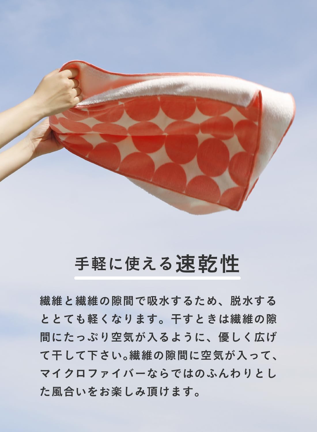 【抜群の速乾性】マイクロファイバーは、1本1本が放射線状の三角断面形状で無数の隙間を持っています。通気性に優れた繊維なので、高い速乾性を発揮します。洗濯物の乾きにくい時期にも快適にお使いいただけます