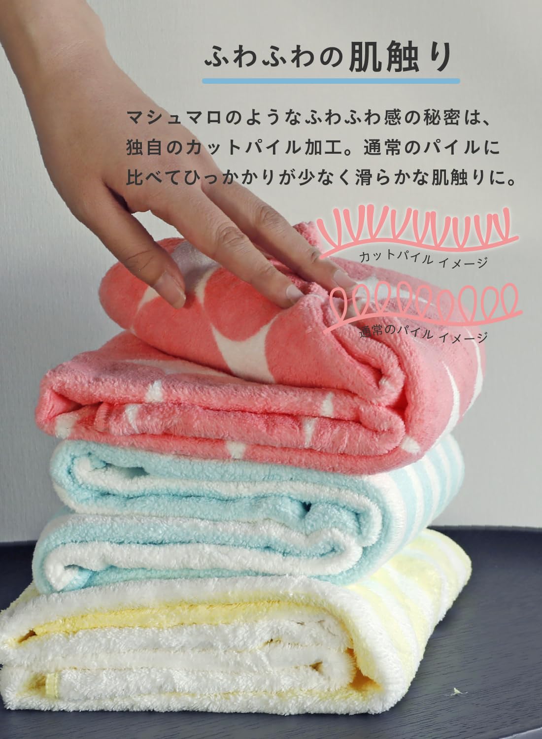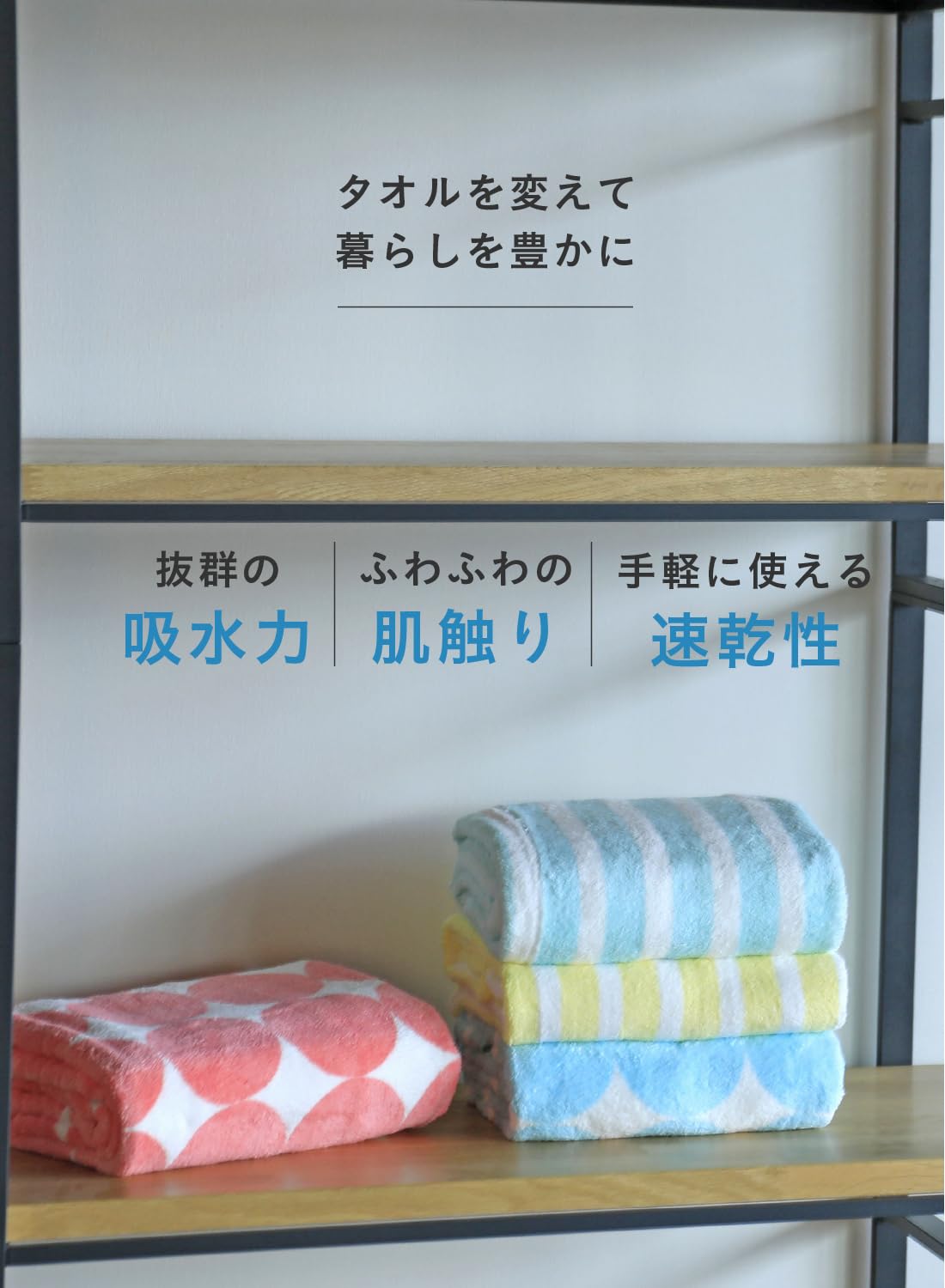 お風呂上がりの身体に付いた水滴を、触れるだけでサッと吸水。ゴシゴシこすらず優しく当てるだけで、タオルドライが出来ます。ジメジメした梅雨時期や真冬の洗濯でも乾きやすいので、お洗濯も楽々です