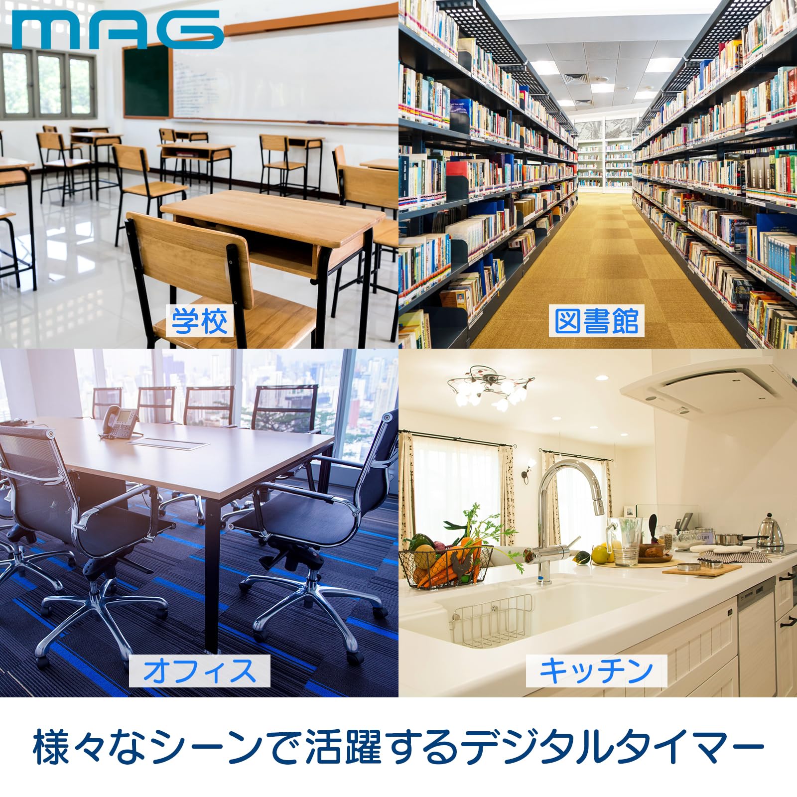 MAG(マグ) タイマー キッチン 勉強 学習 会議 音量切り替え 消音 無音 ライト デジタル 時計表示 置き掛け兼用 マグネット 磁石 ライトグレー ヒカルン TM-608A LGY-Z ノア精密