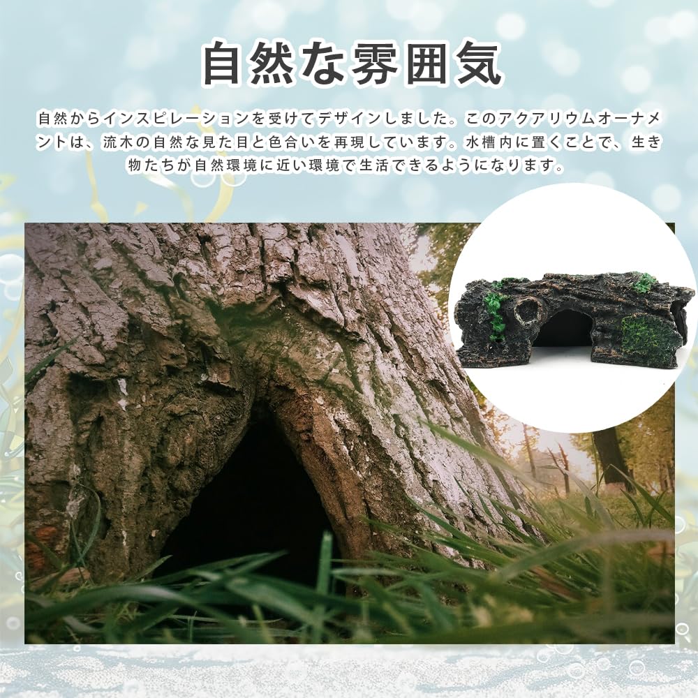 【多目的な用途】このオーナメントは、亀、魚、エビ、ヤドカリなど、さまざまな水槽内のペットに適しています、陸にも適した爬虫類。快適な生息環境を提供し、ストレスを軽減、産卵や繁殖を促進します。また、隠れ家や遊び場としても最適で、ペットたちに理想的な環境を与えます。