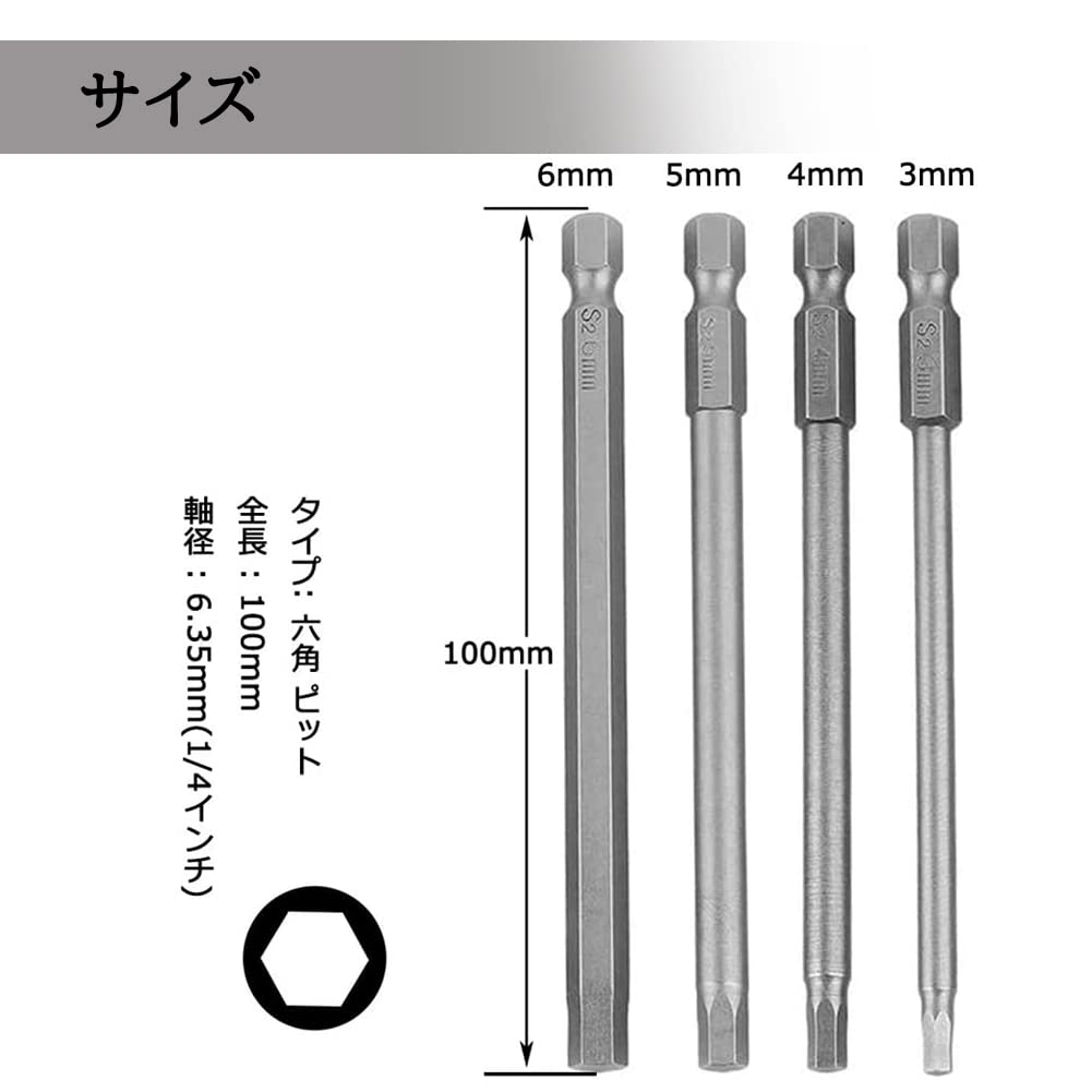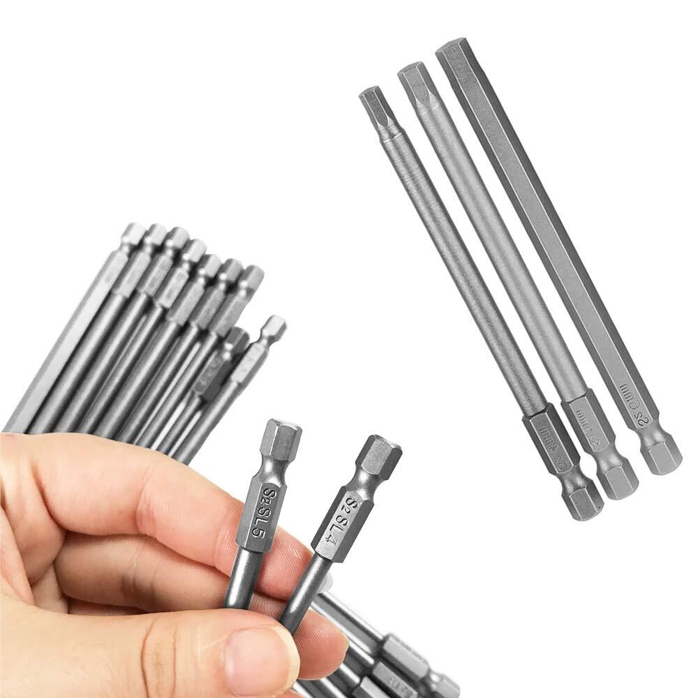 Bestgle6.35 ビットドライバービット 片頭ビット16本組 六角ビット100mm 精密ビット六角ビット マイナスビット 十字軸 六角ビットドライバーセット中空トルクス頭 磁気クロスヘッドドライバービットドリルビット工具 磁気六角ビットセット 電動ドライバービット