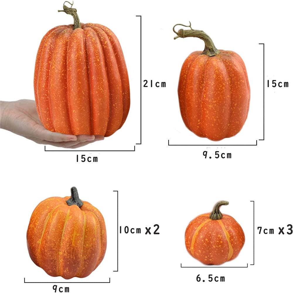 【 お得な7pcsセット 】異なるサイズかぼちゃ(約):高さ21cm*直径15cm*1 重さ:152g / 高さ15cm*直径9.5cm*1 重さ:47g / 高さ10cm*直径9cm*2 重さ:26g / 高さ7cm*直径6.5cm*3 重さ:11g (ご注意:詳しいサイズは写真のように参考してください。モニターの明るさや手動測定によって、色とサイズわずかな誤差があるかもしれません。ご承知ください。)