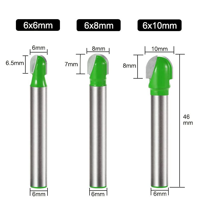 Kimlonton超硬トリマ・ルータービット U溝ビット トリマー ビット(シャンク径6mm) 5本セット 超硬ルーターセット 電動トリマー用 ほぞカッター 面取り切削工具 戸板彫刻 木工用カッター