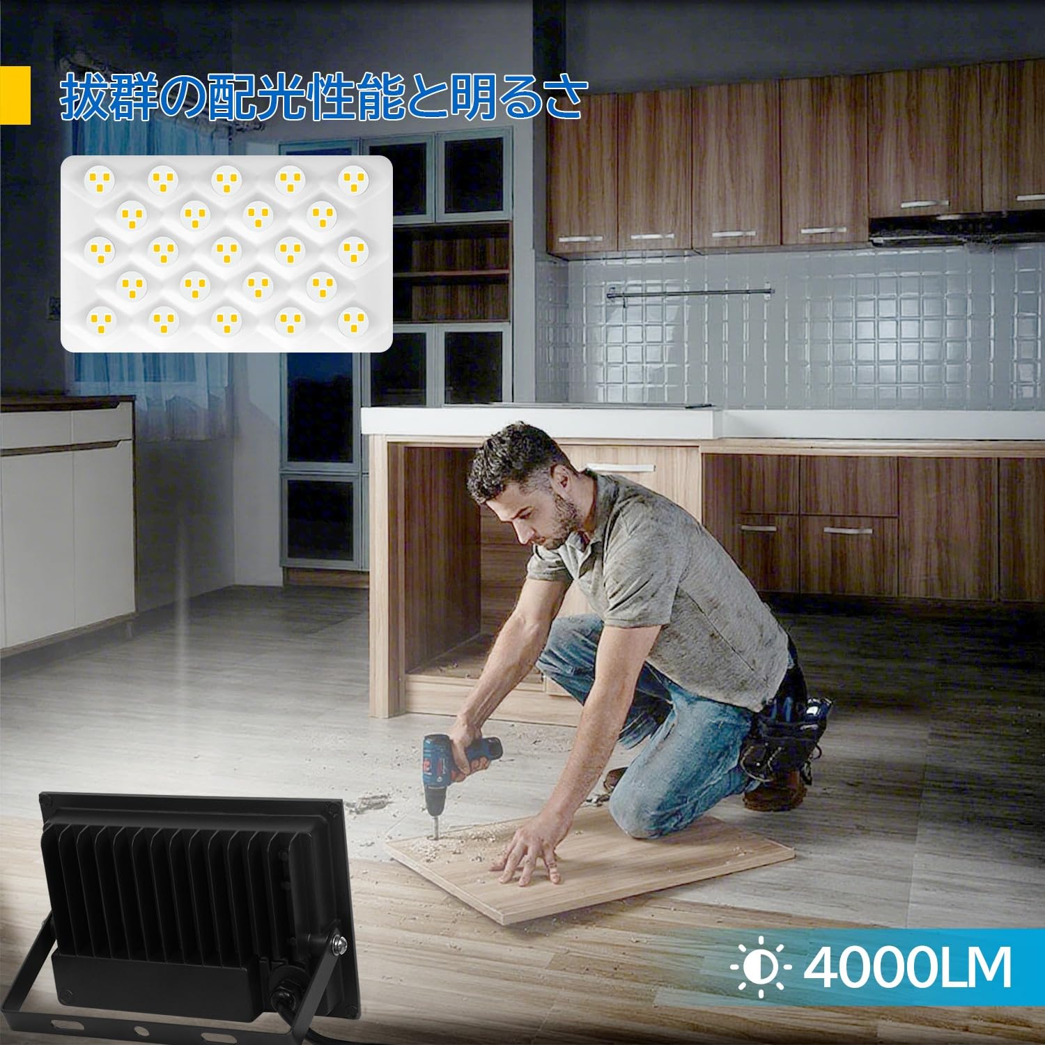 【2個セット】 LED投光器 30W 4000LM 昼光色 ledライト 屋外 IP66 防水 豪雨対応 作業灯 led 100V対応 アース付きプラグ PSE認証済 灯光器 高演色Ra85以上 外灯 高輝度 省エネ 120°広角 屋外照明 看板灯 駐車場 ガレージ 倉庫【新型リフレクターカップ】