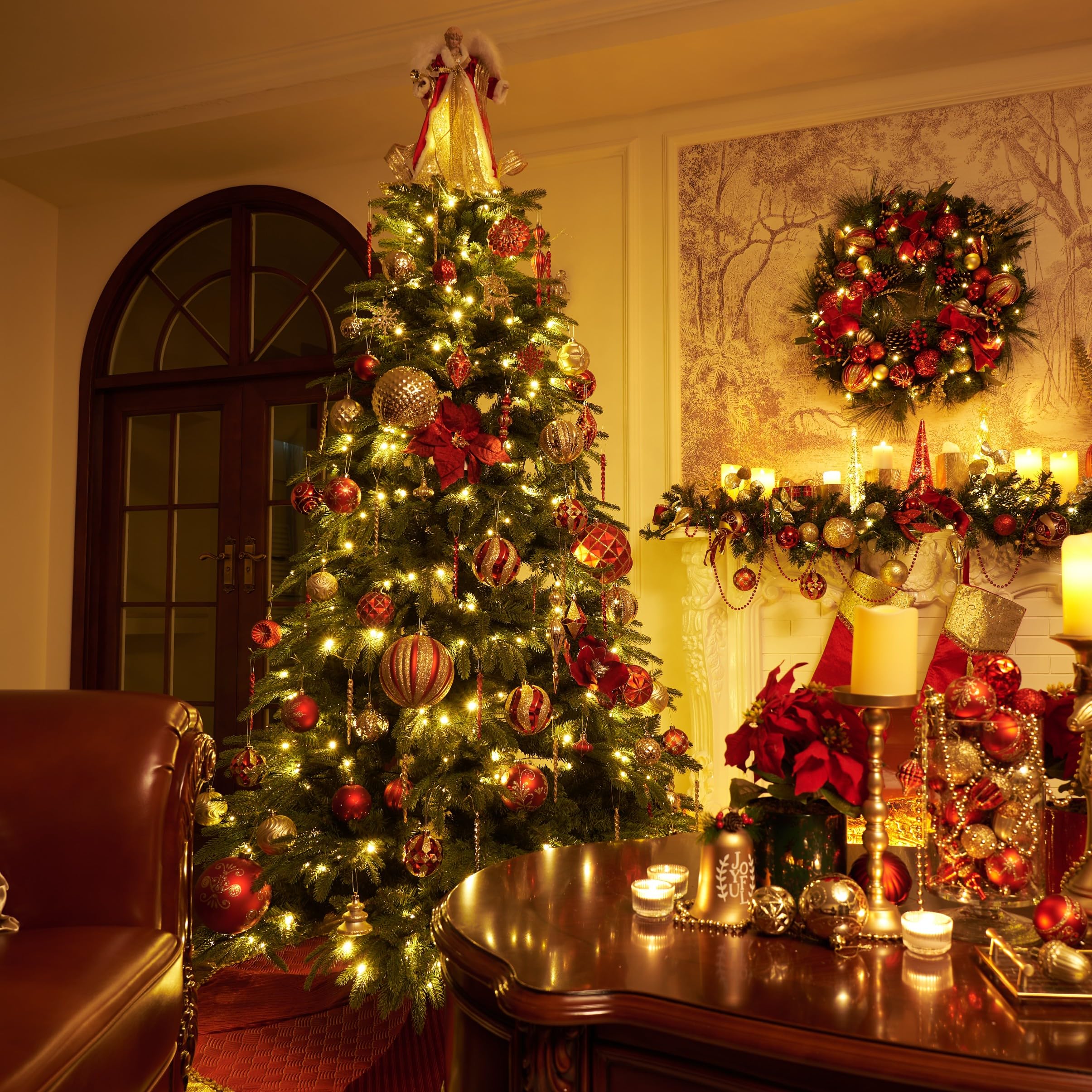 【パッケージとサイズ】金、赤のオーナメントが49個含まれています。各ボールはシームレス接続技術で生産され、洗練された外観を持ちます。パッケージは高品質のエコボール箱を使用し、贅沢感を加えます。