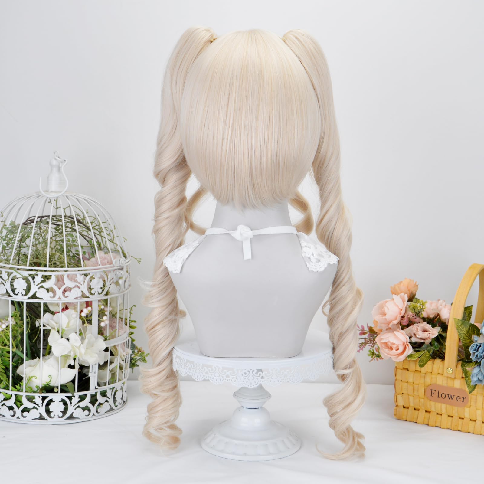 ウィッグロングツインテールかわいいロリータウィッグ仮装女性耐熱ポニーテールウィッグメッシュブロンド