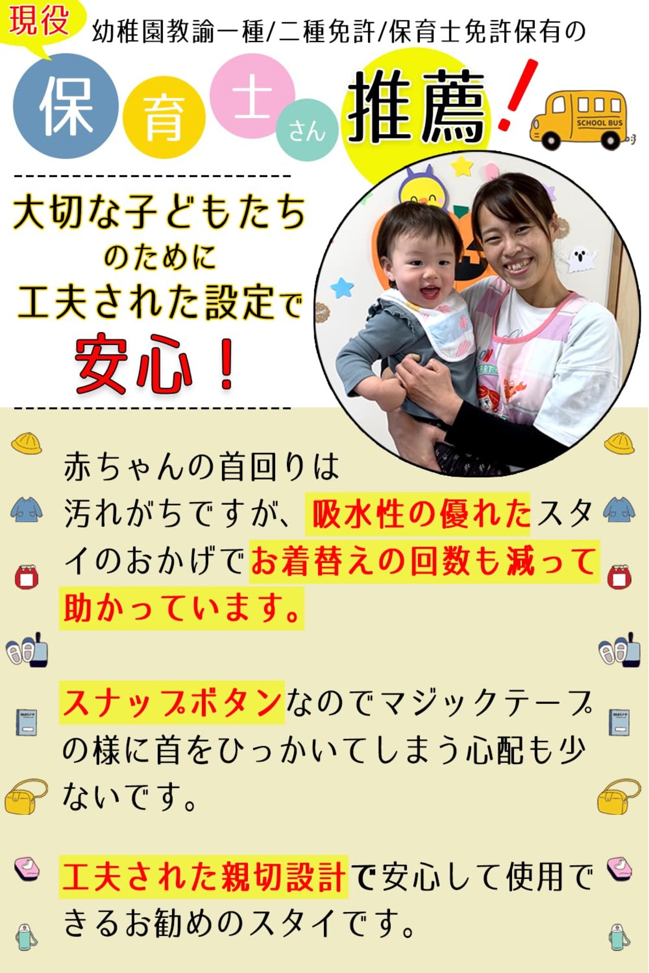 【よだれが多い赤ちゃん専用スタイ】保育園などでよだれかけの換えがたくさん必要なよだれが多いあかちゃんに最適。入園準備の必需品。