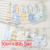 【特価在庫】[BMC bib.] スタイ 10枚 セット よだれかけ ビブ 綿100% 柔らかい 6重 ガーゼ U型