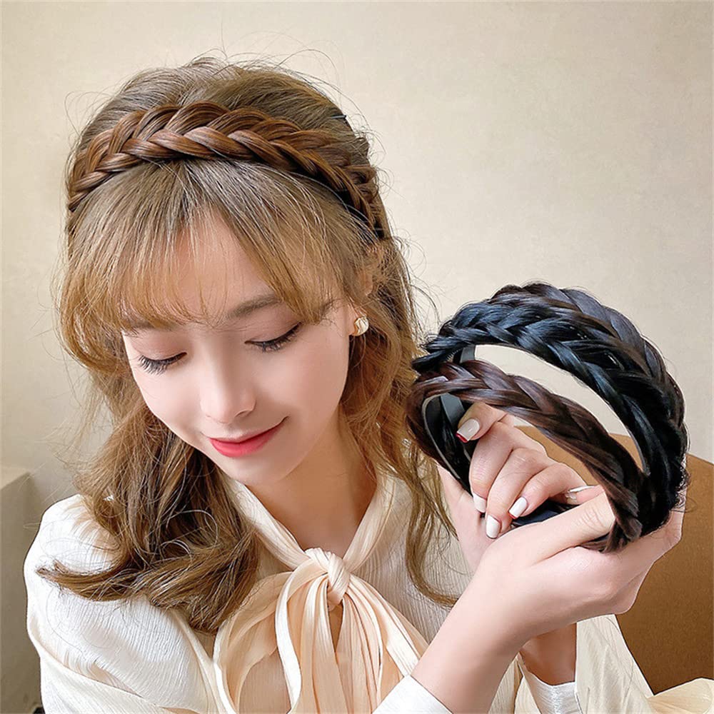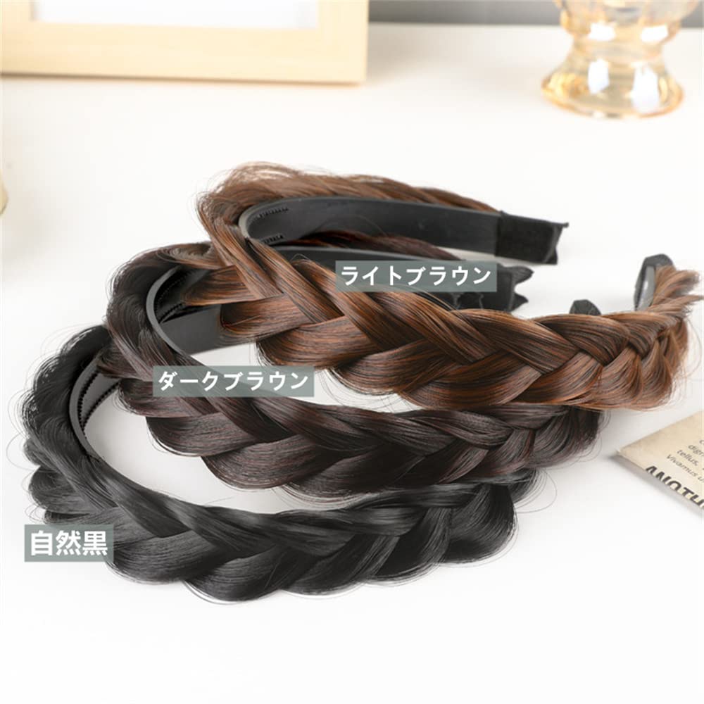 カチューシャ 三つ編み 前髪 髪留め ヘアバンド 髪飾り ヘアアクセサリー 滑り止め 痛くない かわいい (ライトブラウン)