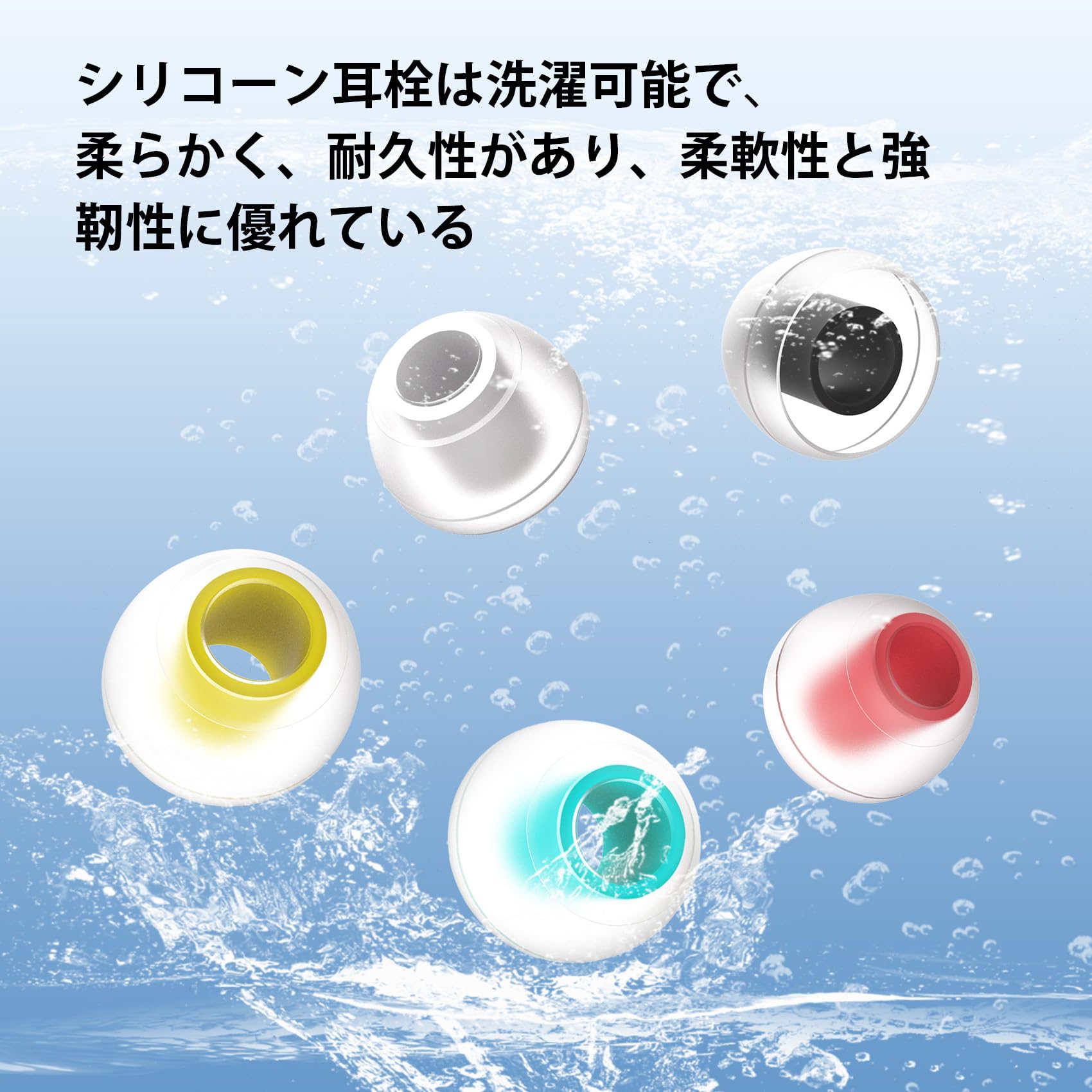 シリコン材料使いイヤホン イヤーピースは柔らかくて耳の中に圧力のかからない装着感を実現、長時間使用しても不快感がありません。