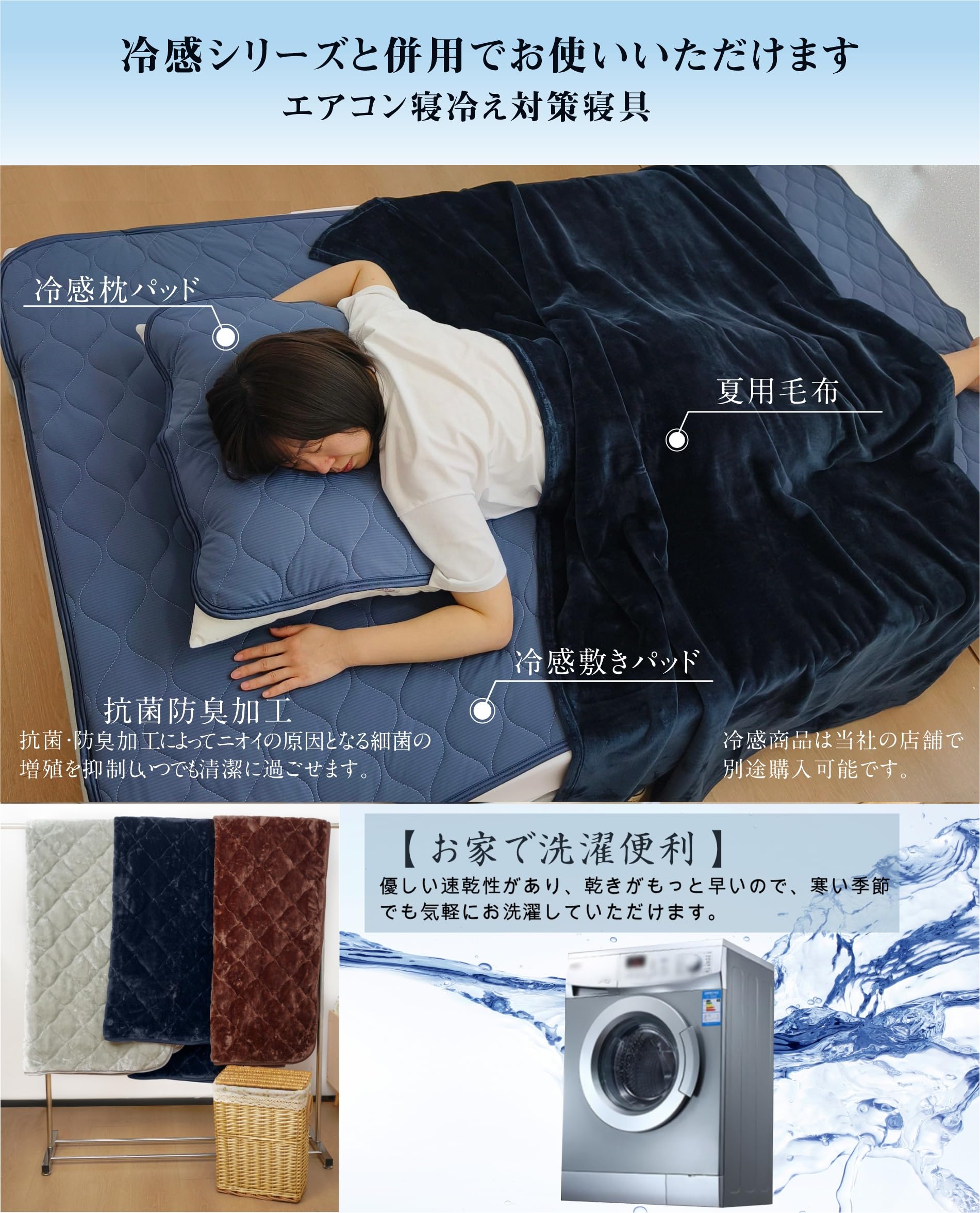 特徴 リバーシブル・軽量, 保湿・静電気防止, 吸湿発熱・蓄熱保温, 抗菌防臭・通気性, 速乾・洗濯可