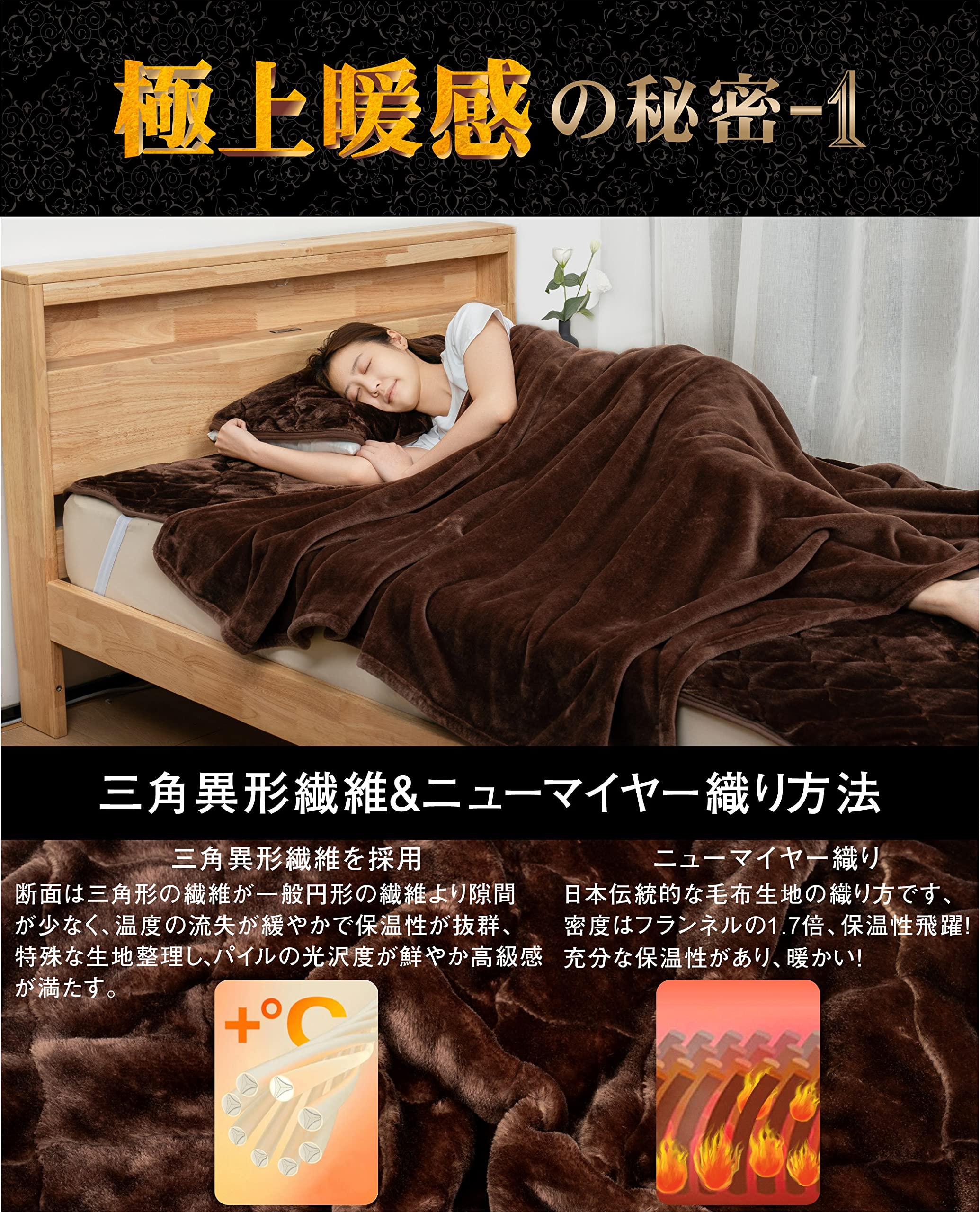 【極上暖感&極上タッチ】ブランケット 毛布 セミダブル 冬 ふわふわ毛布 あったか ニューマイヤー CICA保湿 柔らか肌触り なめらか オールシーズン 吸湿発熱 蓄熱保温 光触媒 抗菌防臭 静電気防止 軽量 速乾 洗える(ブラウン・セミダブル 160x200cm)