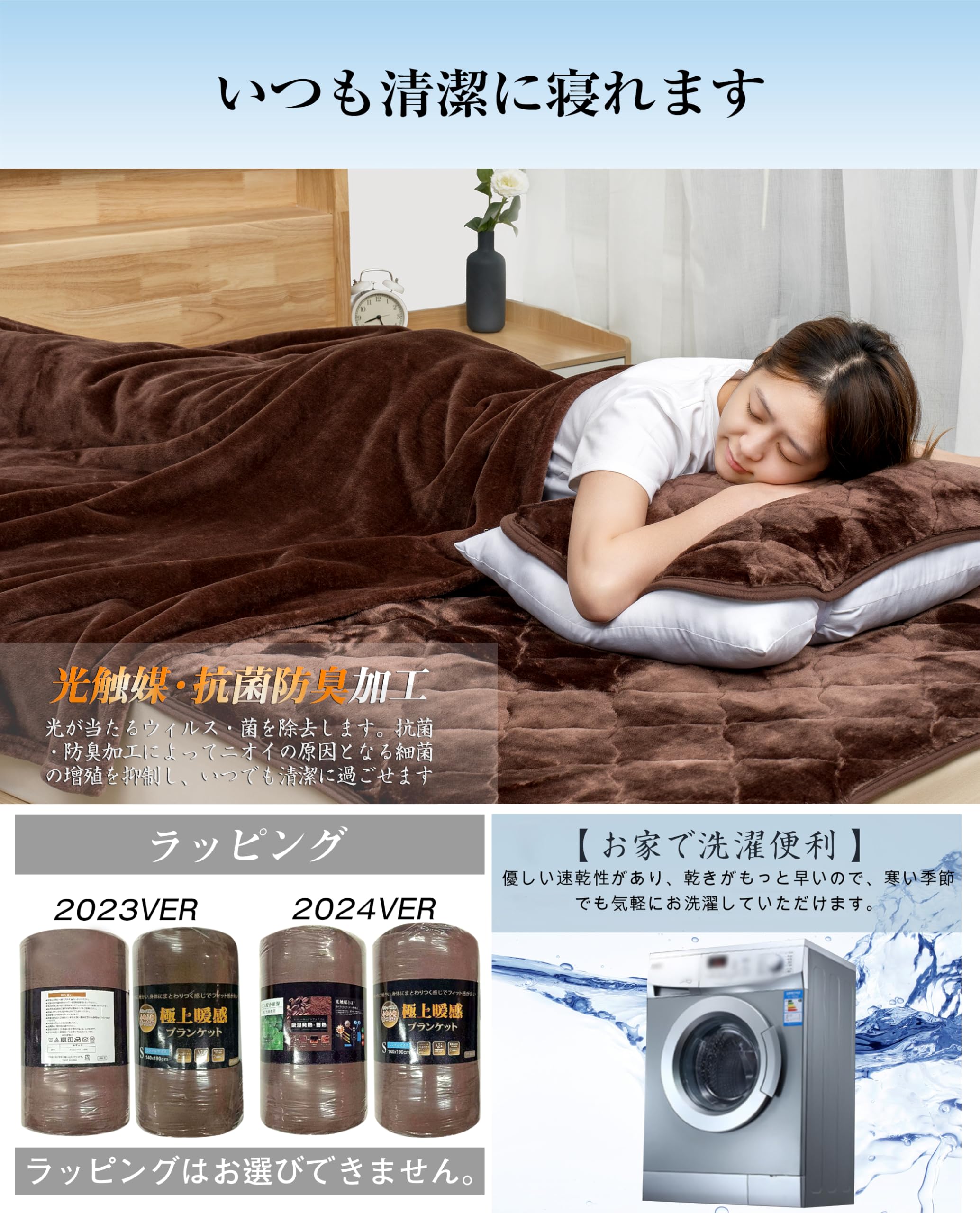 ??〔光触媒抗菌防臭加工・丸洗OK〕光触媒抗菌防臭加工効果で、ニオイの原因となる細菌の繁殖を抑制します。清潔で安全な毛布になります。さらにご自宅で簡単に洗えるので、汚れても安心です。もちもち感も損なうことなく心地良くお使いいただけます。