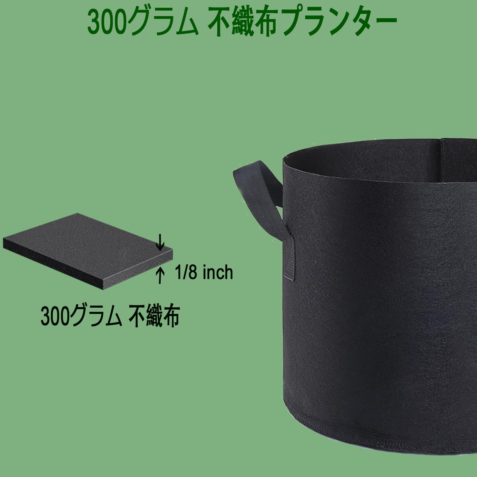 【素材】環境に優しい不織布、5pcs、3ガロン(10 L)、サイズ:幅25cm×高さ24cm、重量:約80g *5 カラー:ブラック。