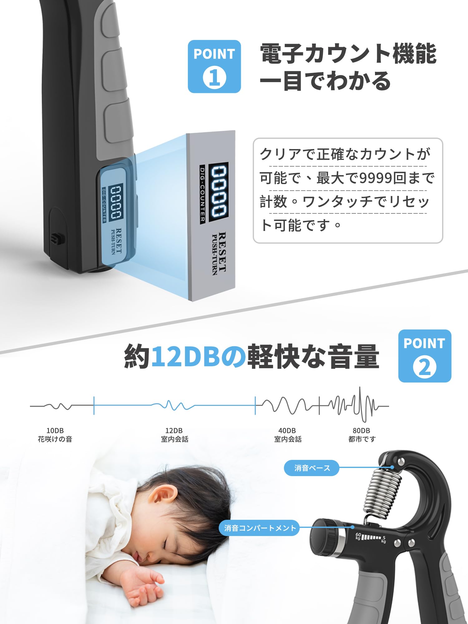【電子カウンターで一目瞭然】ハンドグリップの先端には電子カウンターが装備され、9999回まで正確にカウント可能です。