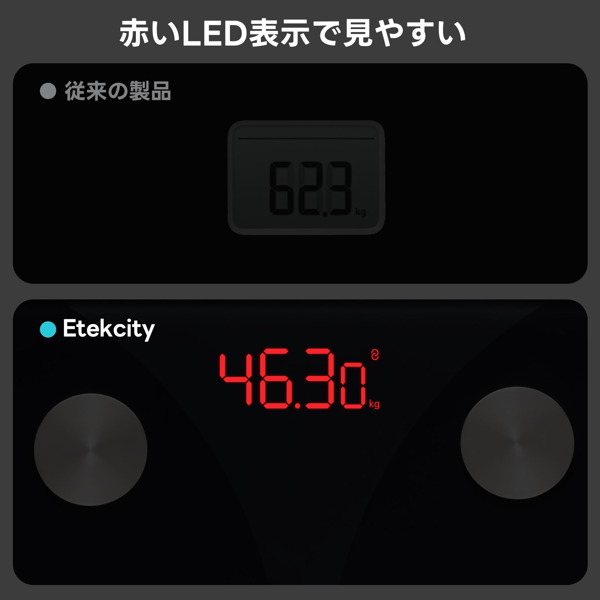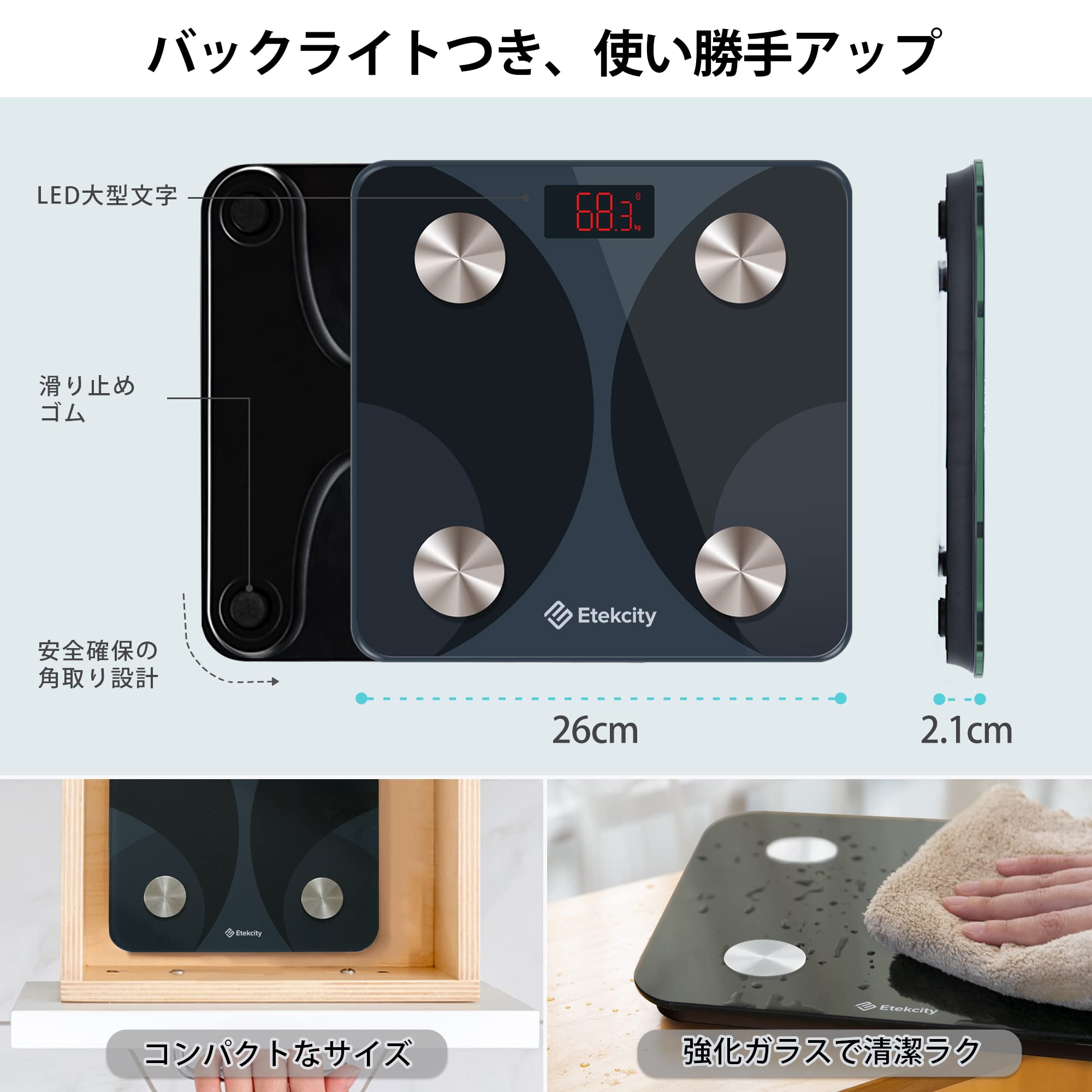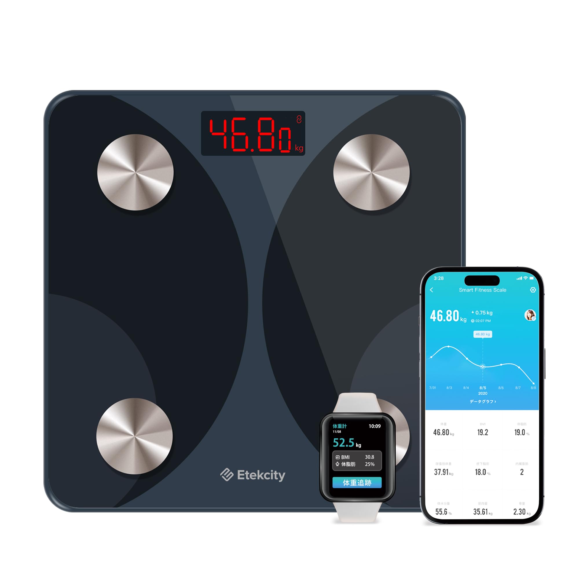 【人気】Etekcity 体重計 体組成計 スマホ連動 13項目測定可能 2年品質保障 体脂肪計 Fitbit連携 スマート 高精度 軽量 日本語対応APP・説明書 FIT8S (黒) | GIGATERA