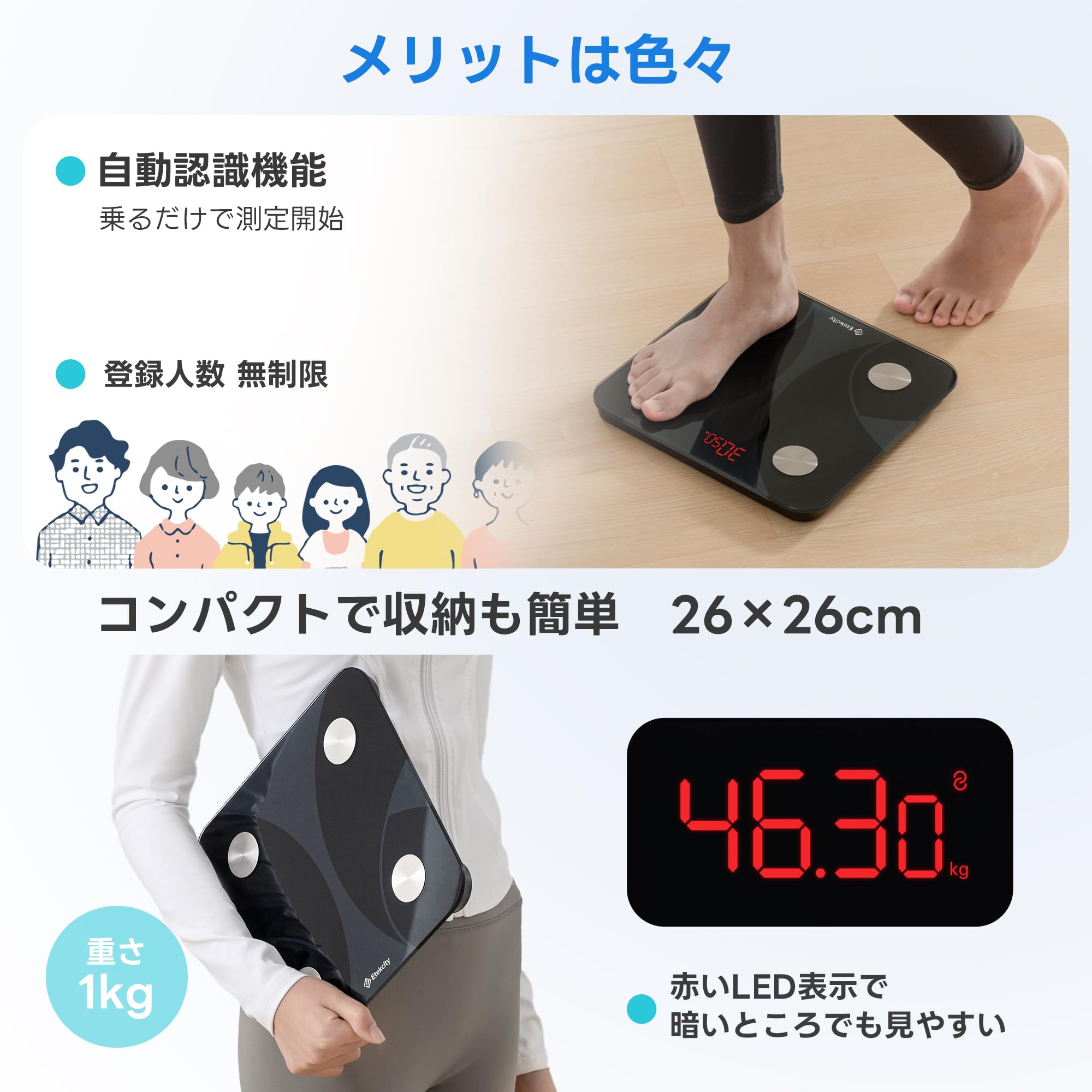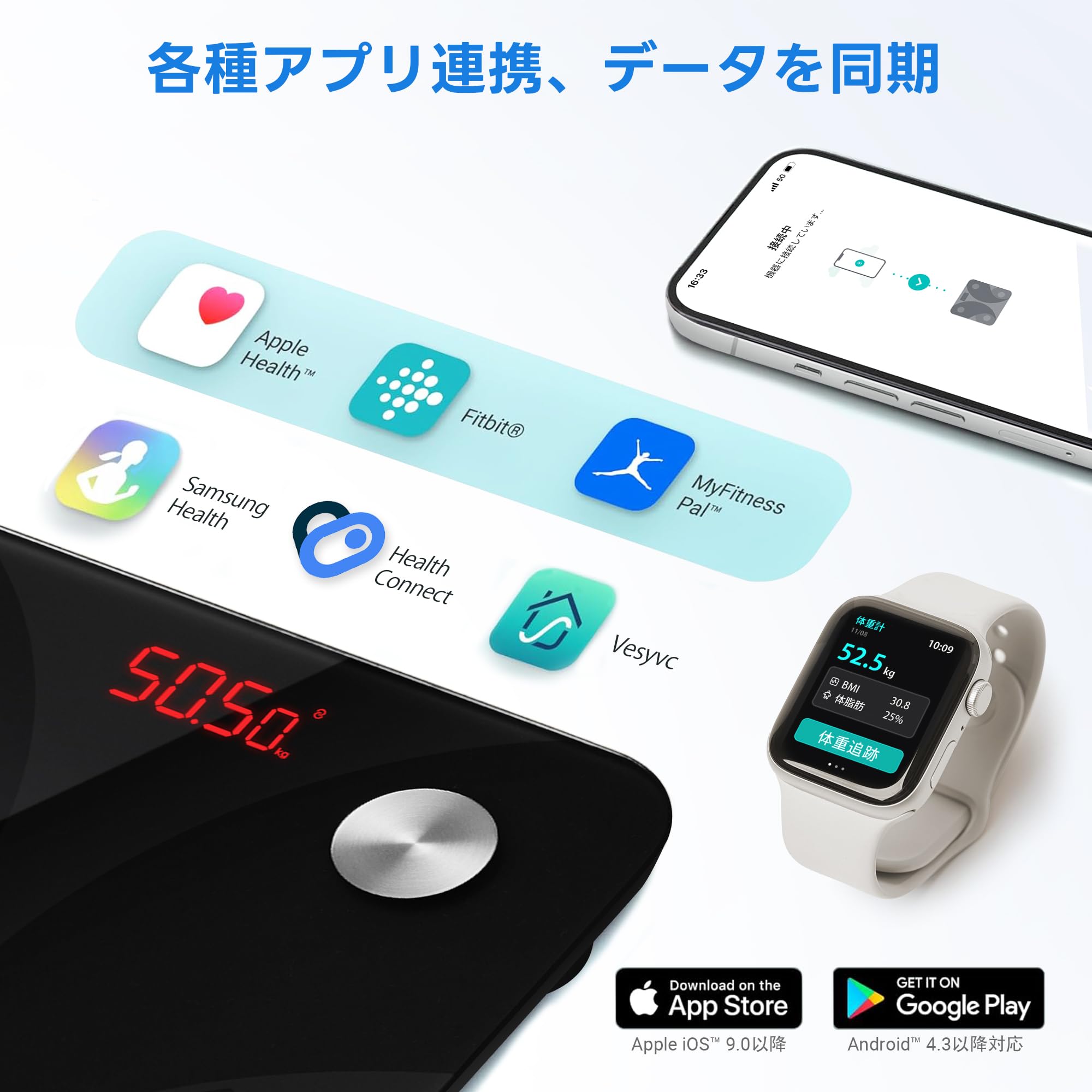 Etekcity 体重計 体組成計 スマホ連動 13項目測定可能 2年品質保障 体脂肪計 Fitbit連携 スマート 高精度 軽量 日本語対応APP・説明書 FIT8S (黒)