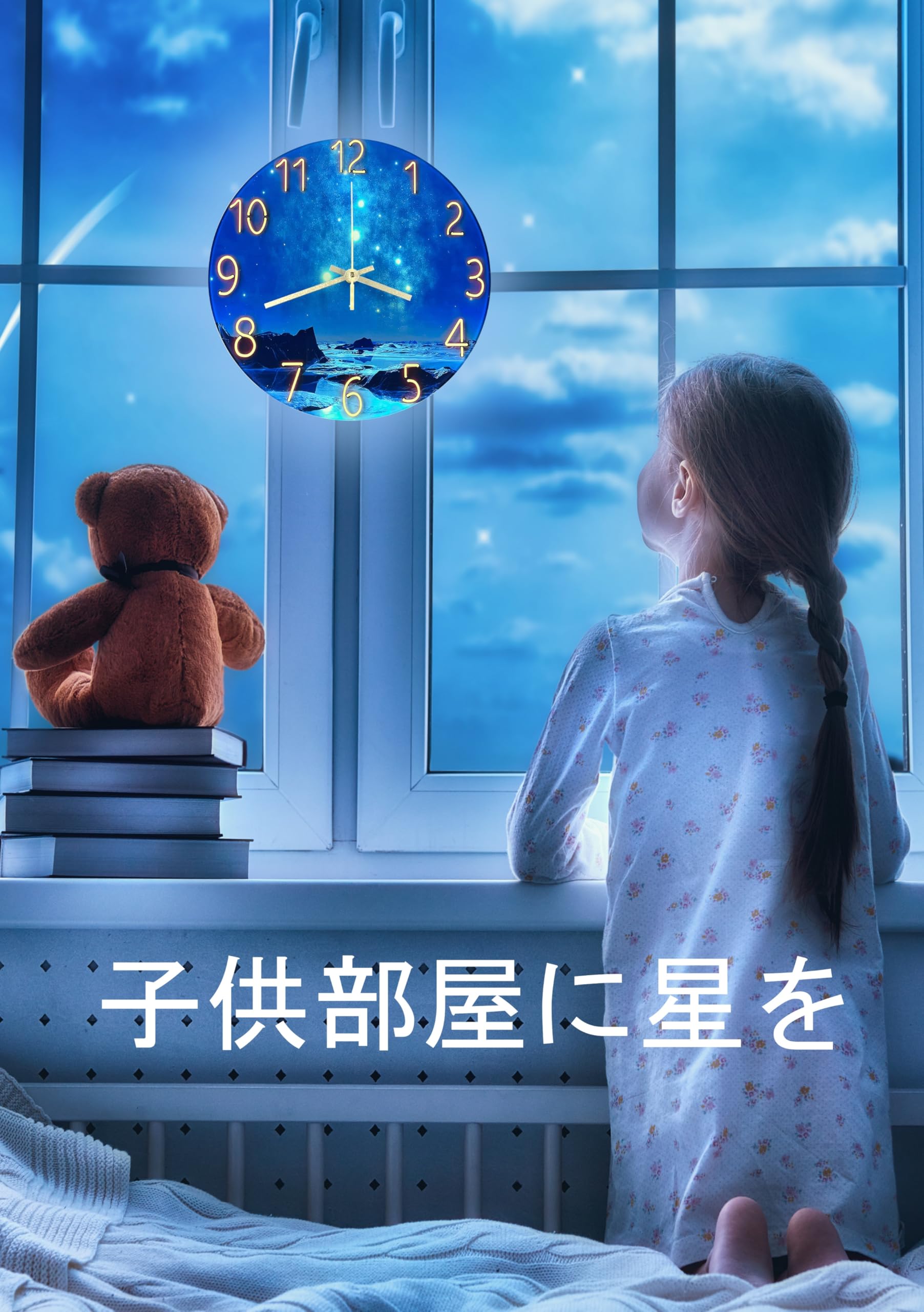 YRO 壁掛け時計 おしゃれ 星空 北欧風 掛け時計 日本語説明書付 掛け時計 壁掛け 子供部屋 勉強部屋 (海と夜空)
