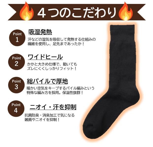 [グンゼ] あったか靴下 〈5足組 ベーシック 厚地 消臭 吸湿発熱 防寒 GM0211 メンズ