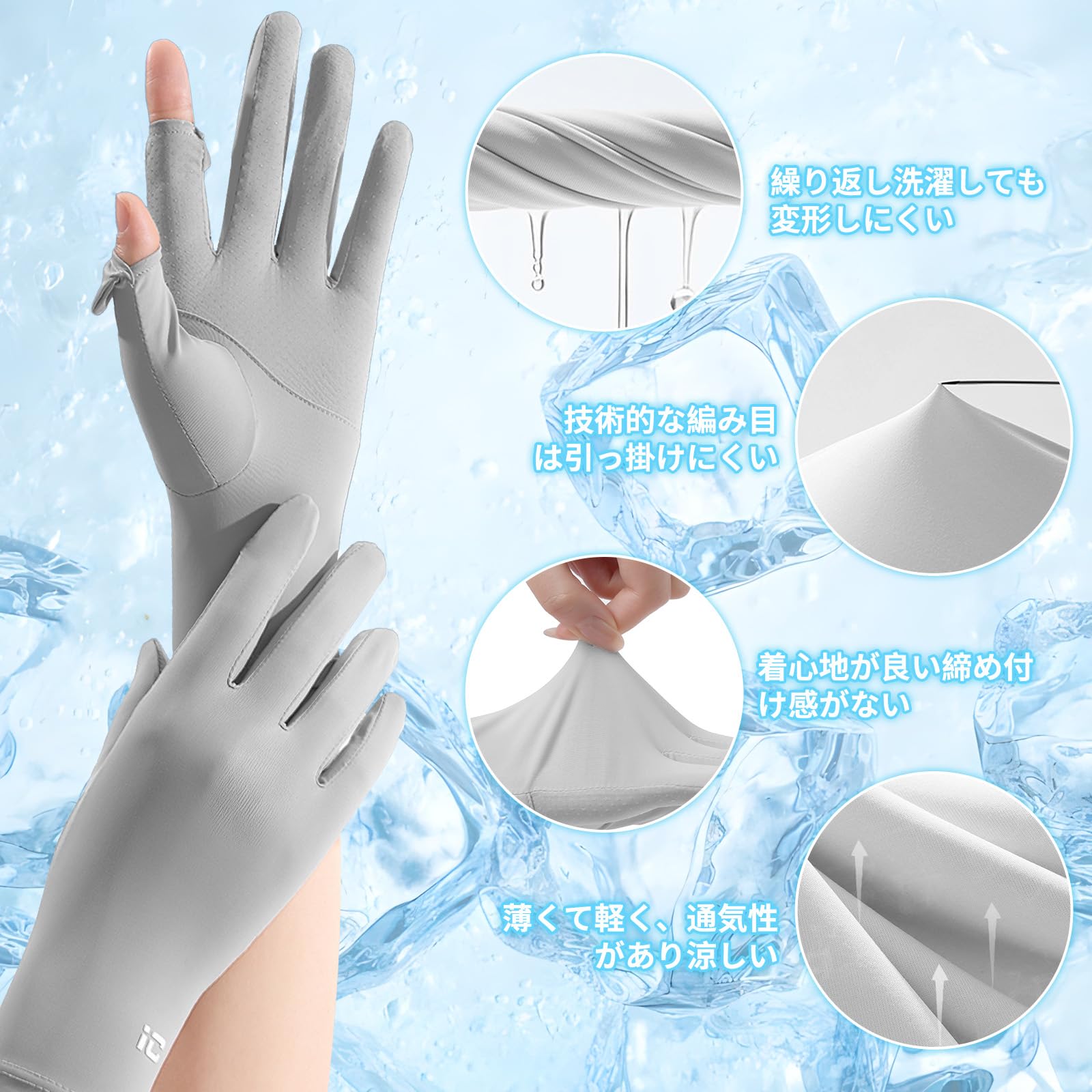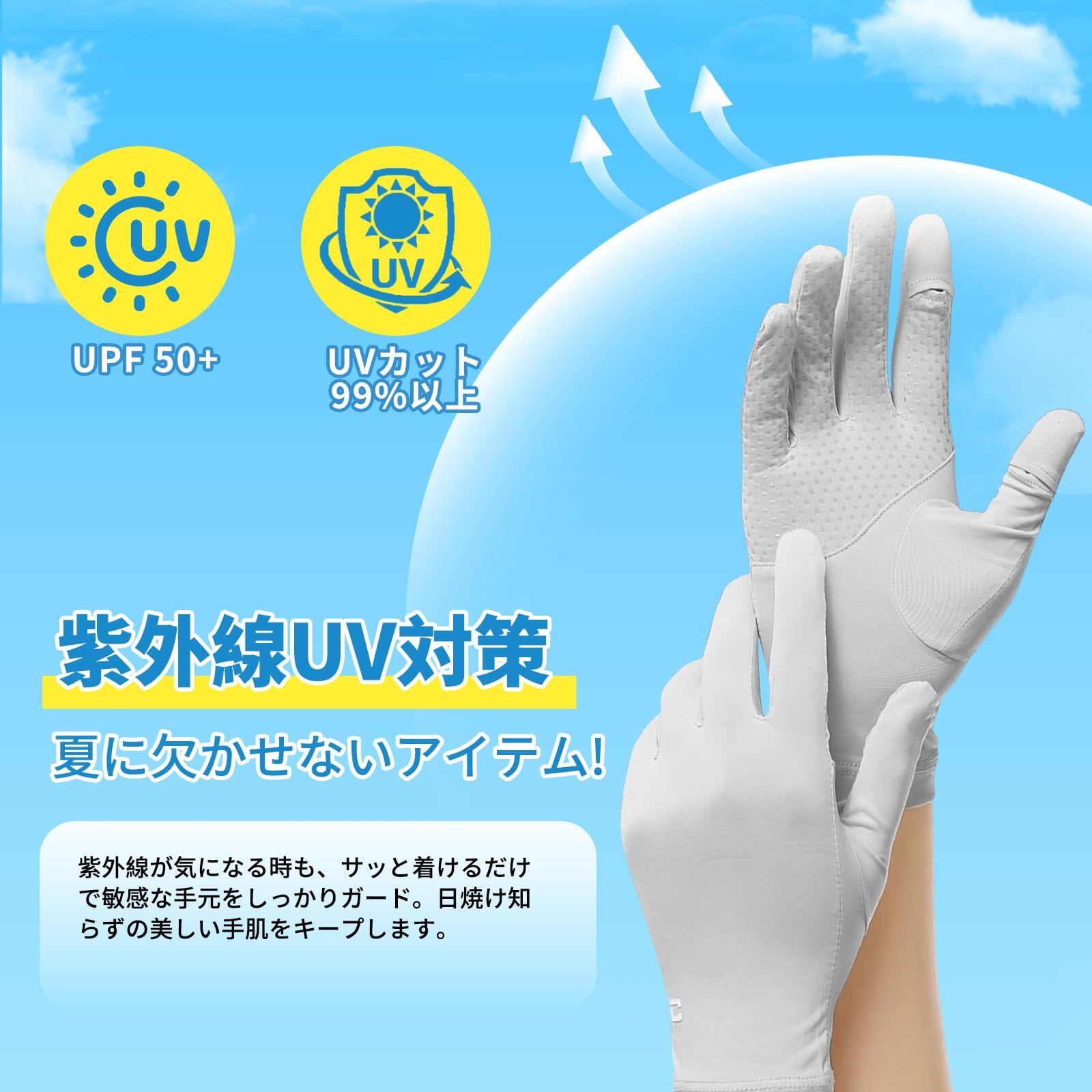 [CANVUE] 手袋 レディース UVカット 夏 【接触冷感-5℃・UPF50+・滑り止め設計・スマホ操作】 肌に優しい UVグローブ 紫外線対策 手荒れ 吸汗速乾 日焼け対策 冷房対策 極薄 伸縮性 無地 グローブ 通勤・自転車・運転用