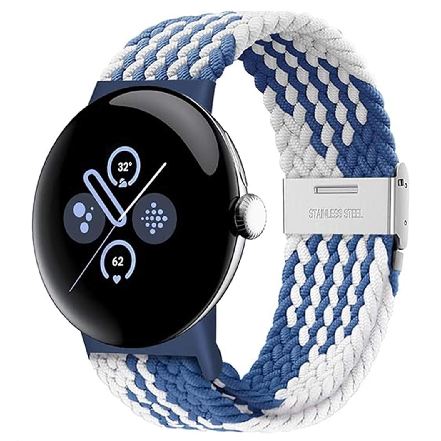 【新着】[Odejaa] Google Pixel Watchバンド/Google Pixel Watch 4/3 45mm 対応 伸縮性バンド 改良型コネクター付き 通気性 のナイロン製スポーツバンド 男女兼用 (青と白 45mm) | GIGATERA