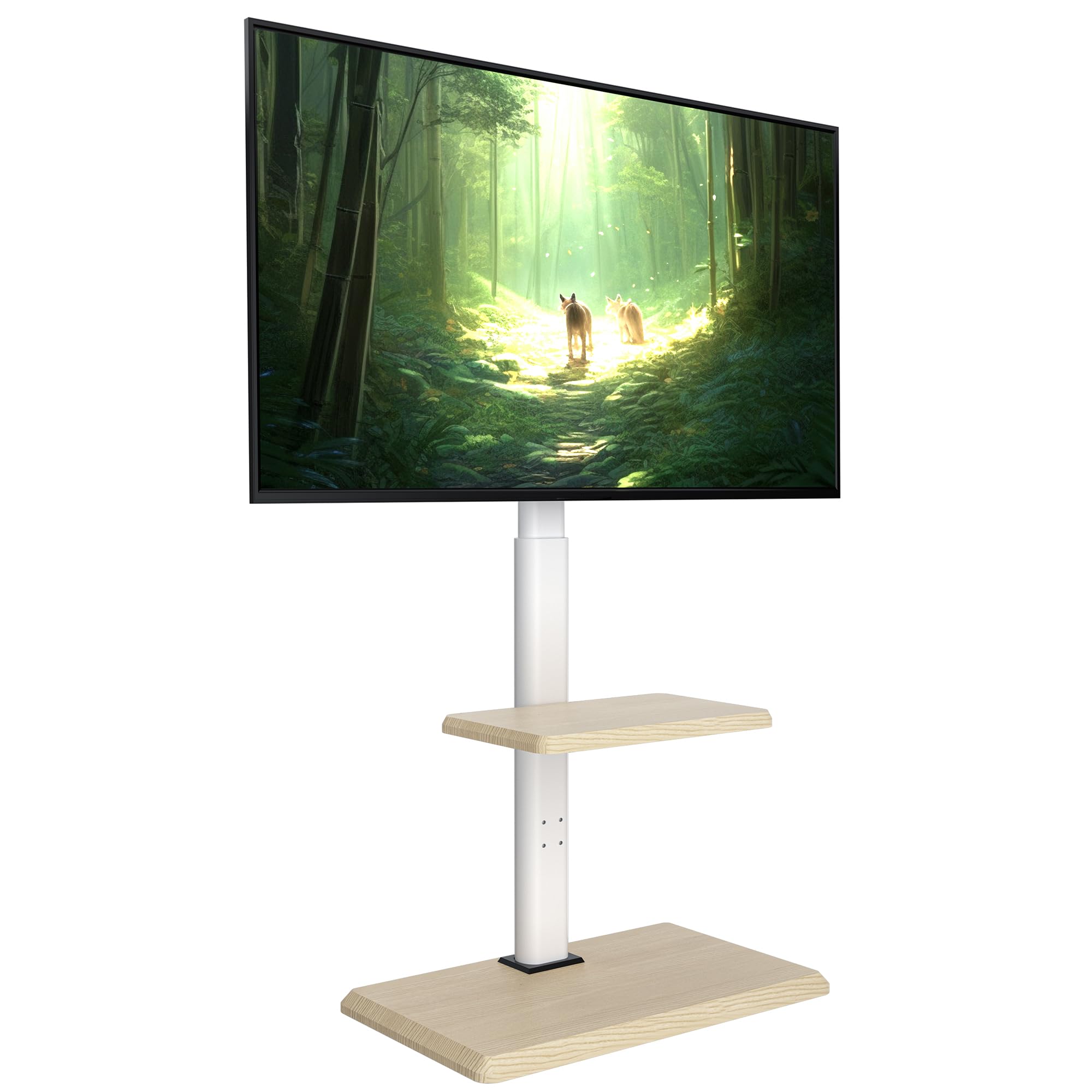 FORGING MOUNT テレビスタンド 隠しキャスター付きテレビ台 壁寄せテレビスタンド 37〜70インチ対応 耐荷重40kg TVスタンド キャスター付き 自立式 壁寄せ ハイタイプ 棚板付きテレビ台 VESA規格600×400mm 高さ調節 左右首振り 家用/業務用 ホワイトウォルナット