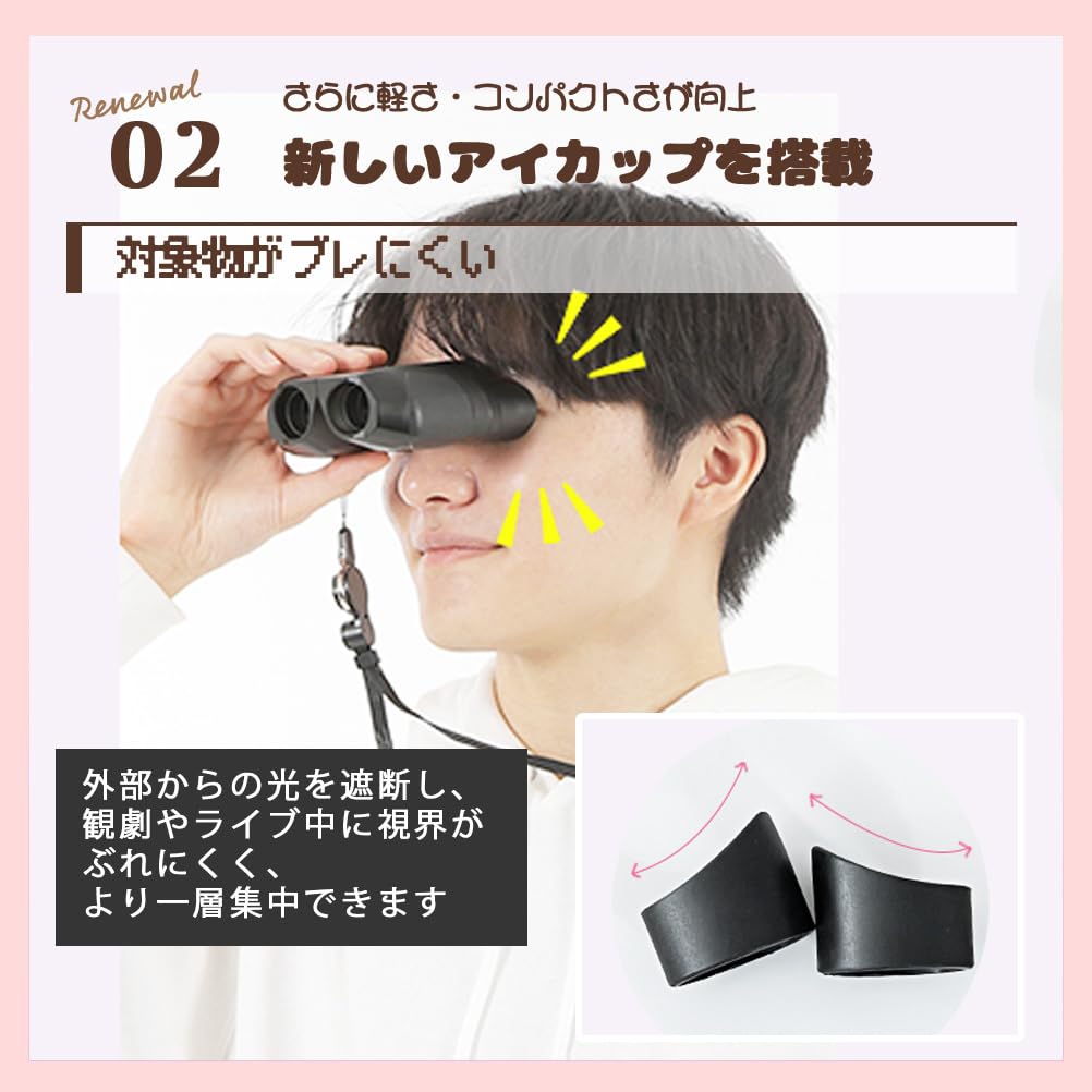 ? 【軽さと機能性、両立の設計】 わずか155gの重量。最高級のBak4プリズムを使用し、視野の明瞭さと鮮明さを実現。10倍の高倍率で、舞台上の表情や細部までクリアに捉え、感動的なライブ体験を提供します。宝塚友の会、会員様もお使いいただいています。