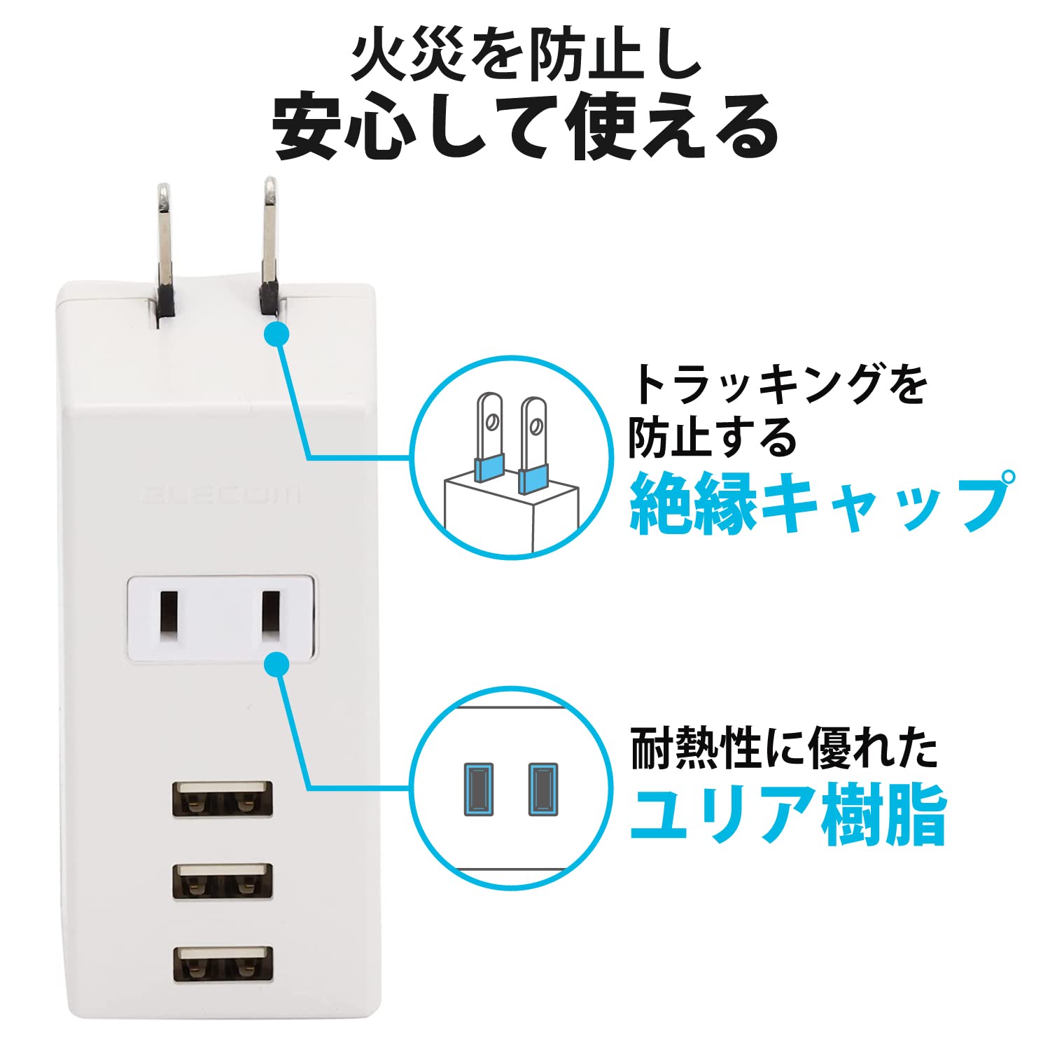 エレコム USBタップ/USBメス×3/AC×1/縦挿し/2.1A/ホワイト