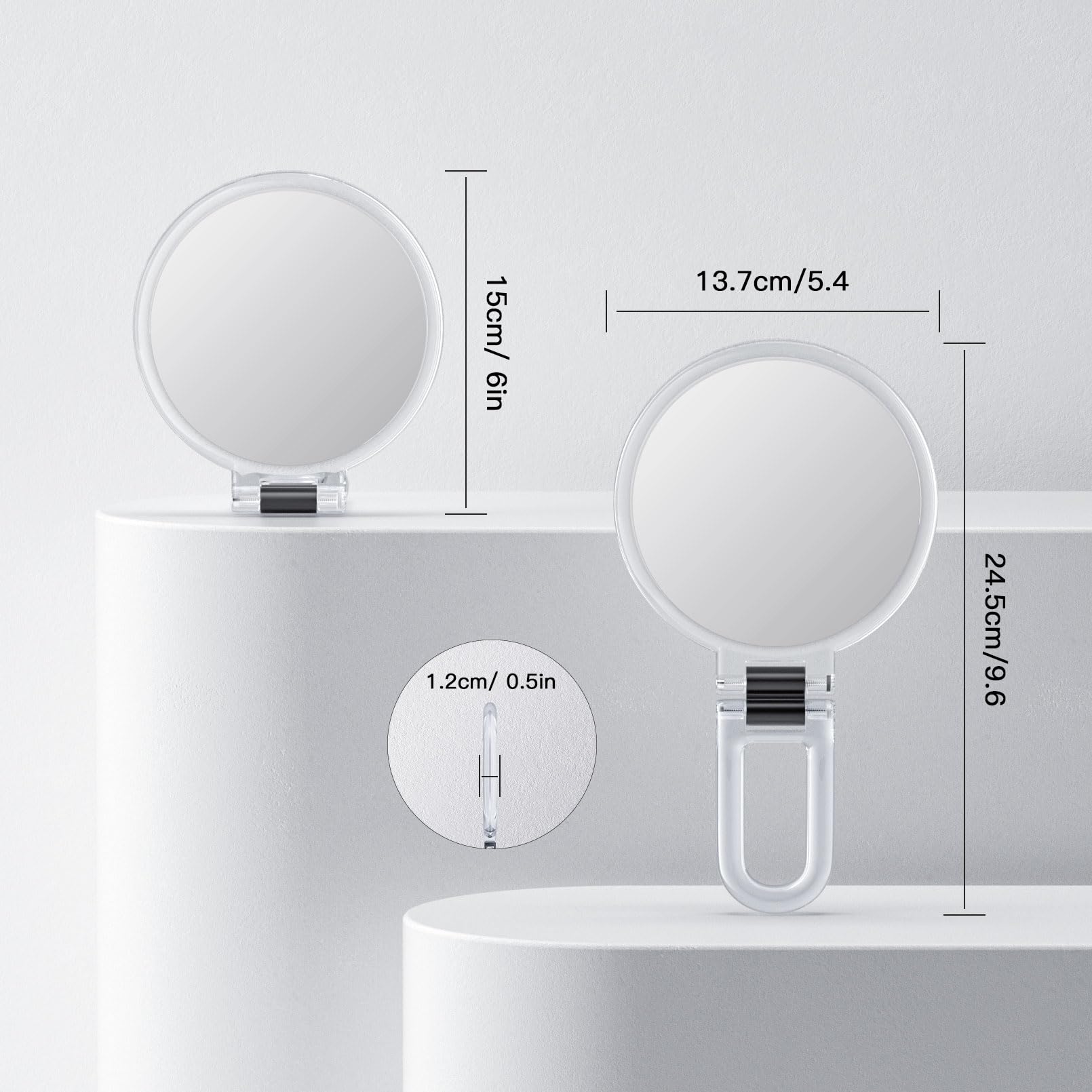 手鏡 拡大鏡 10倍 折りたたみ両面ハンドル付き化粧鏡 コンパクトミラー 10倍と等倍 卓上ミラー コンパクト 持ち運び便利 円形 13.7CM クリア