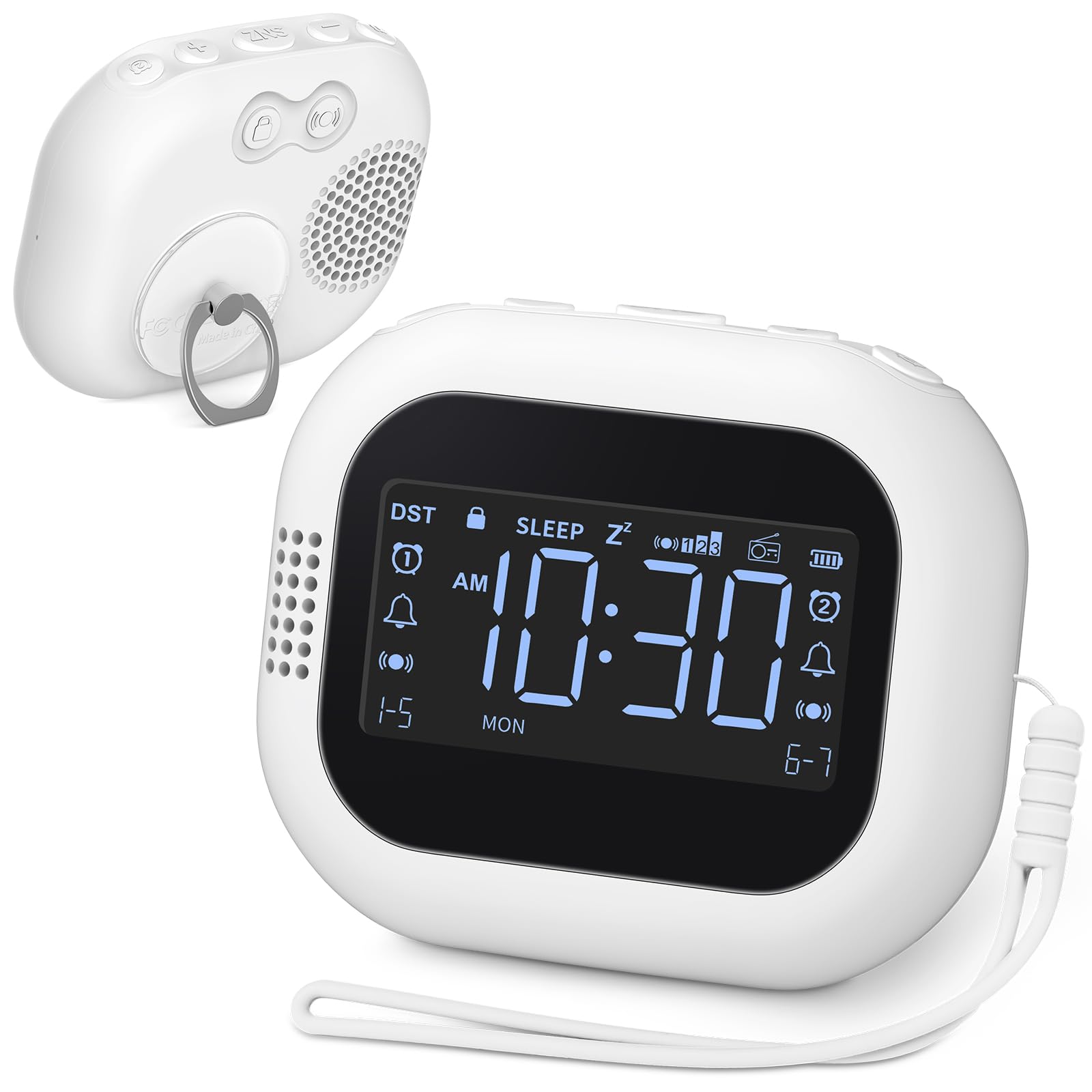 【強力振動】振動目覚まし時計 ラジオ機能付き 目覚まし バイブレーション Type-c充電式 目覚まし時計 2つのアラーム同時設定可能 5~60分スヌーズ時間 二度寝対策 自立できる 3段階振動モード 3つウェイクアップモード 省電力モード 常時点灯 12/24時間表示 バックライト付き 薄い コンパクト 軽い ロックモード 誤操作防止 サマータイム機能 (ホワイト)