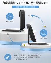 【角度に反応するスマートセンサー照明】革命的なセンサーデザインにより、究極のメイクアップミラー体験をお楽しみください。ミラーと台座の角度が30°を超えると、ライトが自動的に点灯します。逆に、角度が30°未満になると、ライトは自動的に消灯します。