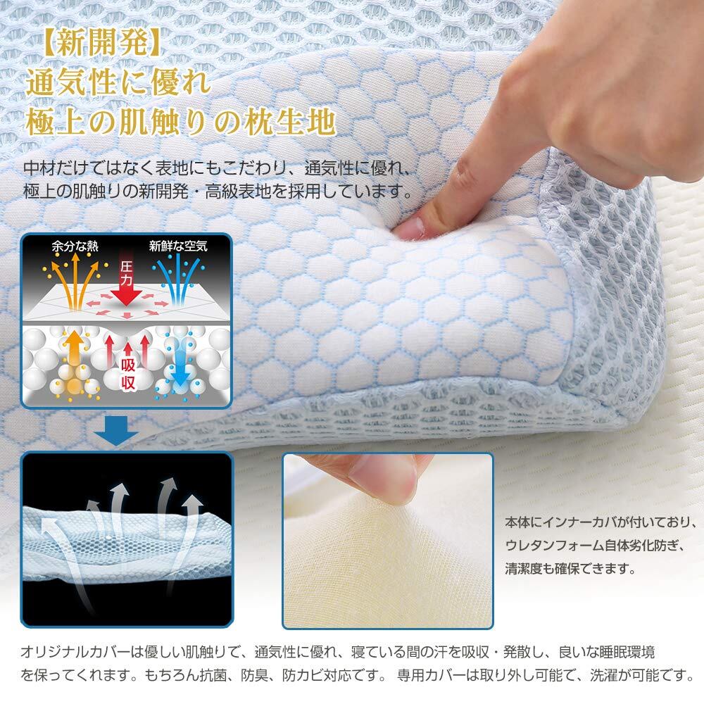 【洗濯可能の枕カバー】肌触りがよく、通気性にも優れたこだわりのオリジナルカバーです。通気性・滑らかさ・クッション性の共存。抗菌・防臭処理も施し、洗濯機で簡単にお手入れ可能。※枕本体は洗濯不可、陰干しをオススメいたします。