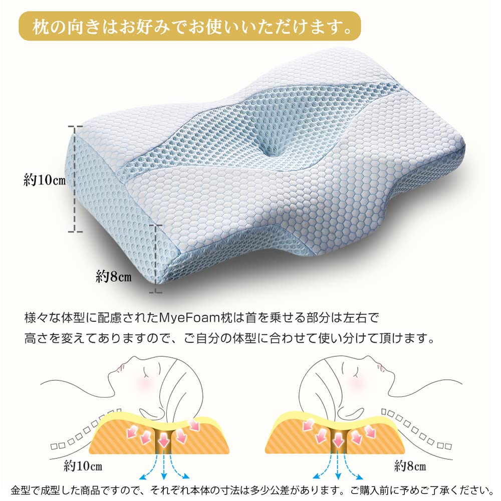 MyeFoam 枕 安眠 肩がラク 低反発 まくら 凹型の中空設計 頭が安定し 首や肩の負担にならない 高さ調整可 仰向き 横向き プレゼント 洗える枕カバー ブルー