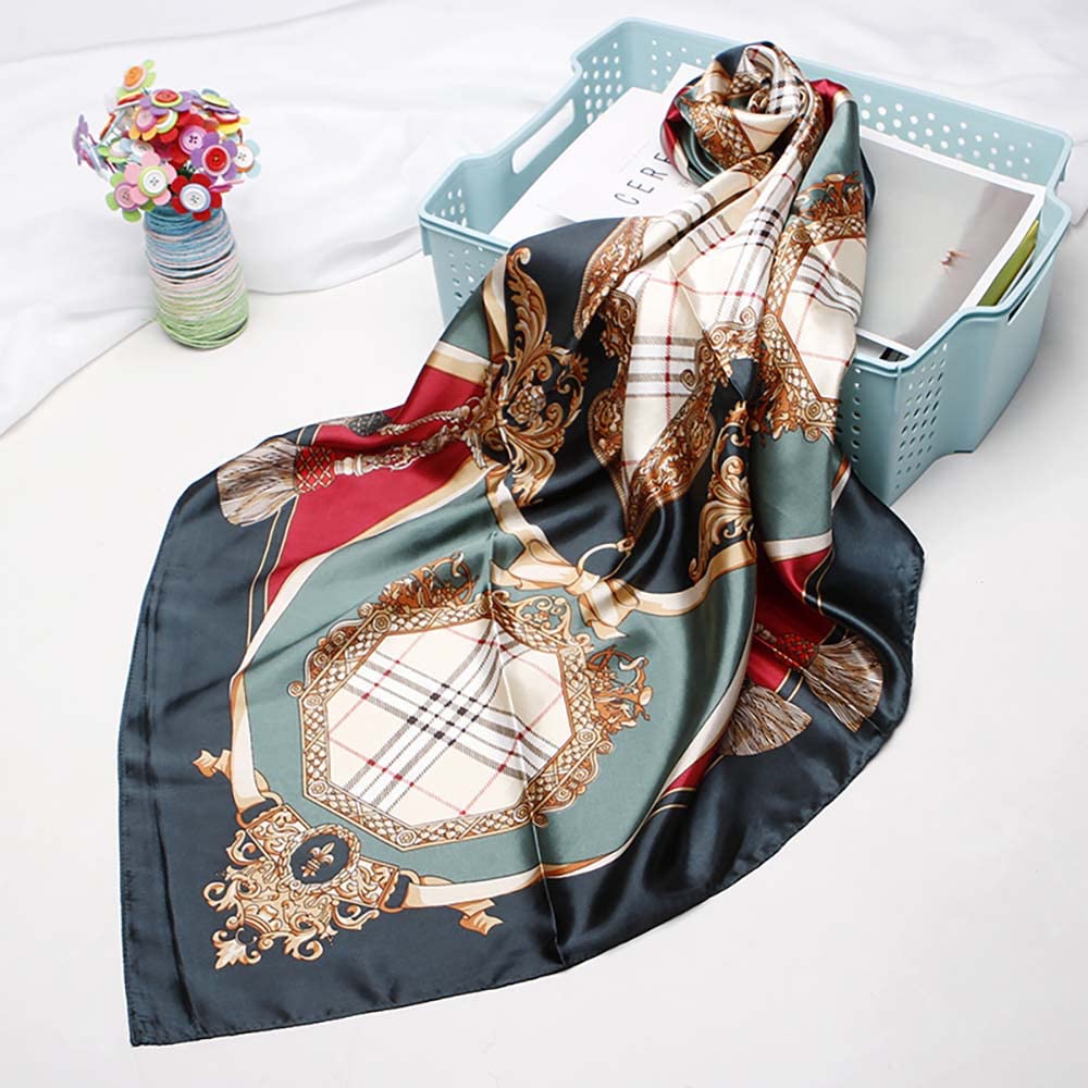 スカーフ レディース 90×90cm シルク 薄手 髪飾り バッグ飾り 持ち手 小物 アクセサリー 通勤 日焼け止めショール パーティー用 (グリーン)