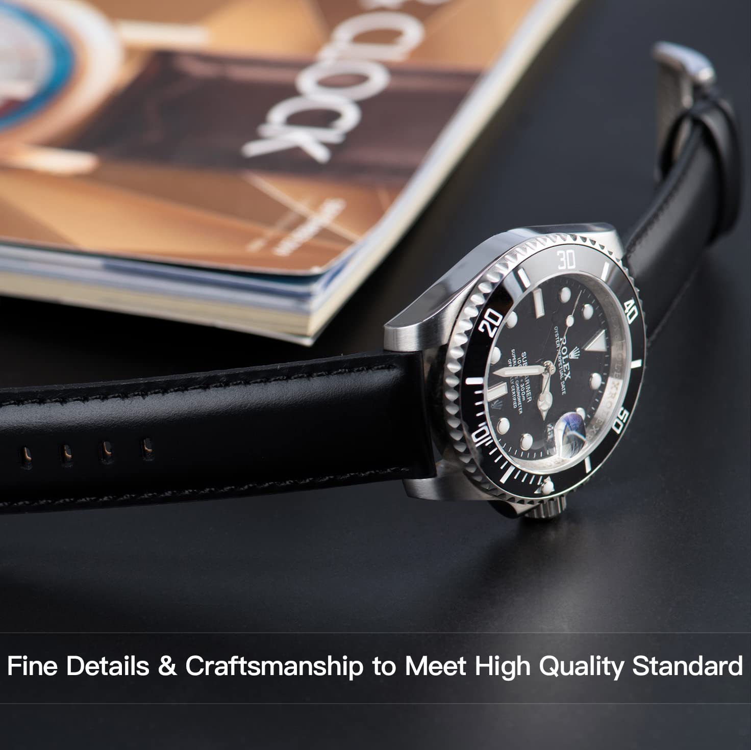 トップグレインカーフレザー:レザーウォッチバンドの最上層には厳選されたトップグレインカーフレザーを使用し、柔らかく滑らかなレザーで高級感を演出しています。裏側は超ソフトなベージュのヌバックレザーで、時計の裏地として最適です。肌に密着し、滑りを最小限に抑えながら理想的な快適さを提供し、汗による悪臭を防ぎます。