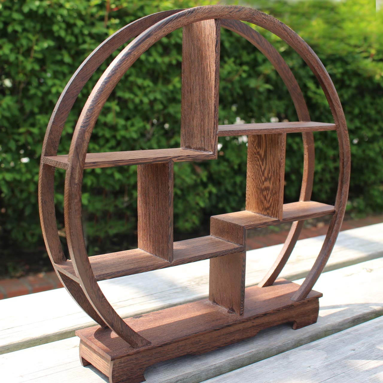 VICHE CATT 中国 茶器 香炉 盆栽 花瓶 台 棚 花台 木製 和風 モダン アンティーク ディスプレイ ウッド ラック 家具 オブジェ (丸型)