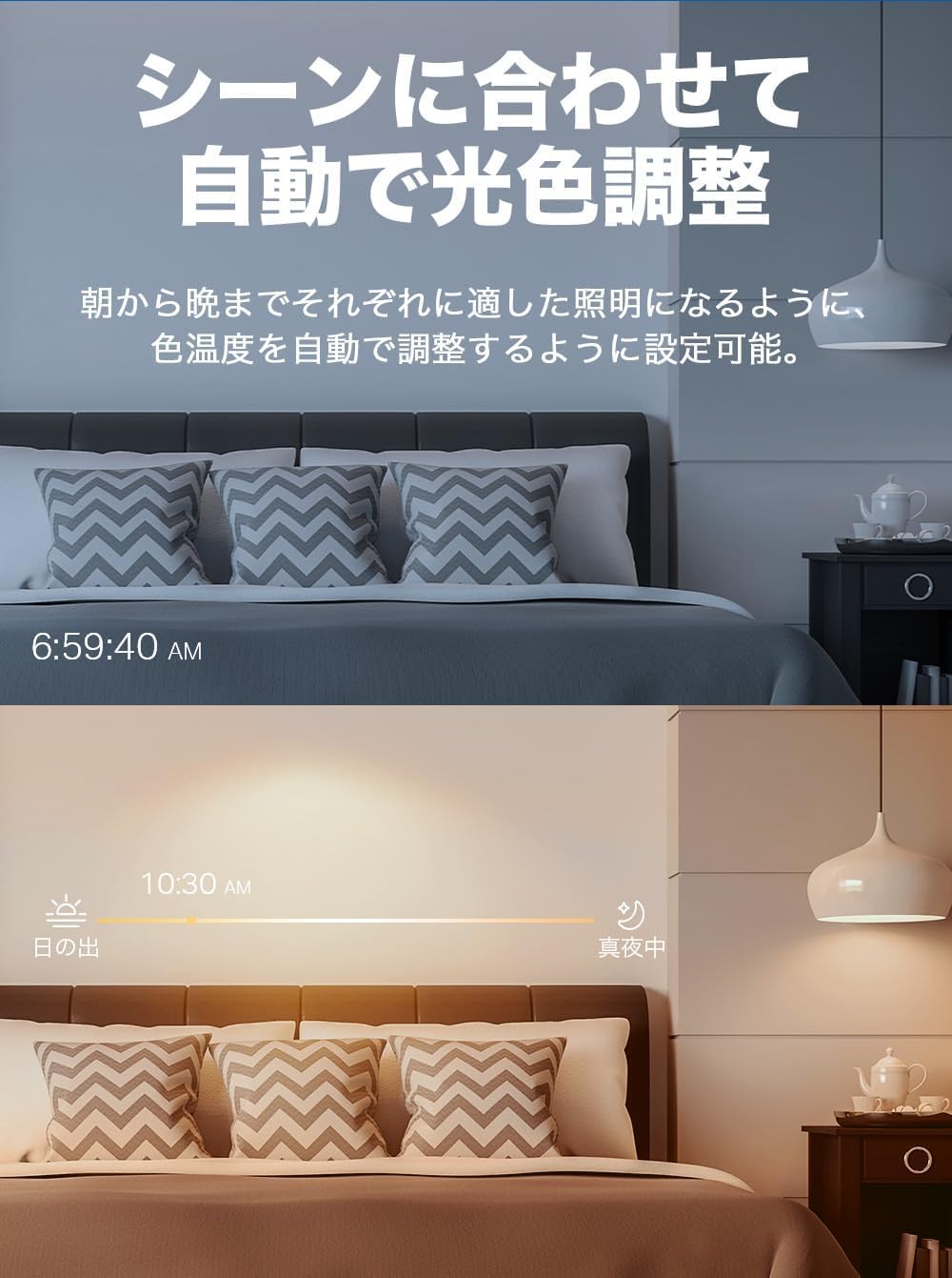 [音声アシスタント対応] Alexa ・ Siri ・ Google Assistantに対応。スマートスピーカーといっしょに使えば音声で調光や色の変更ができます。