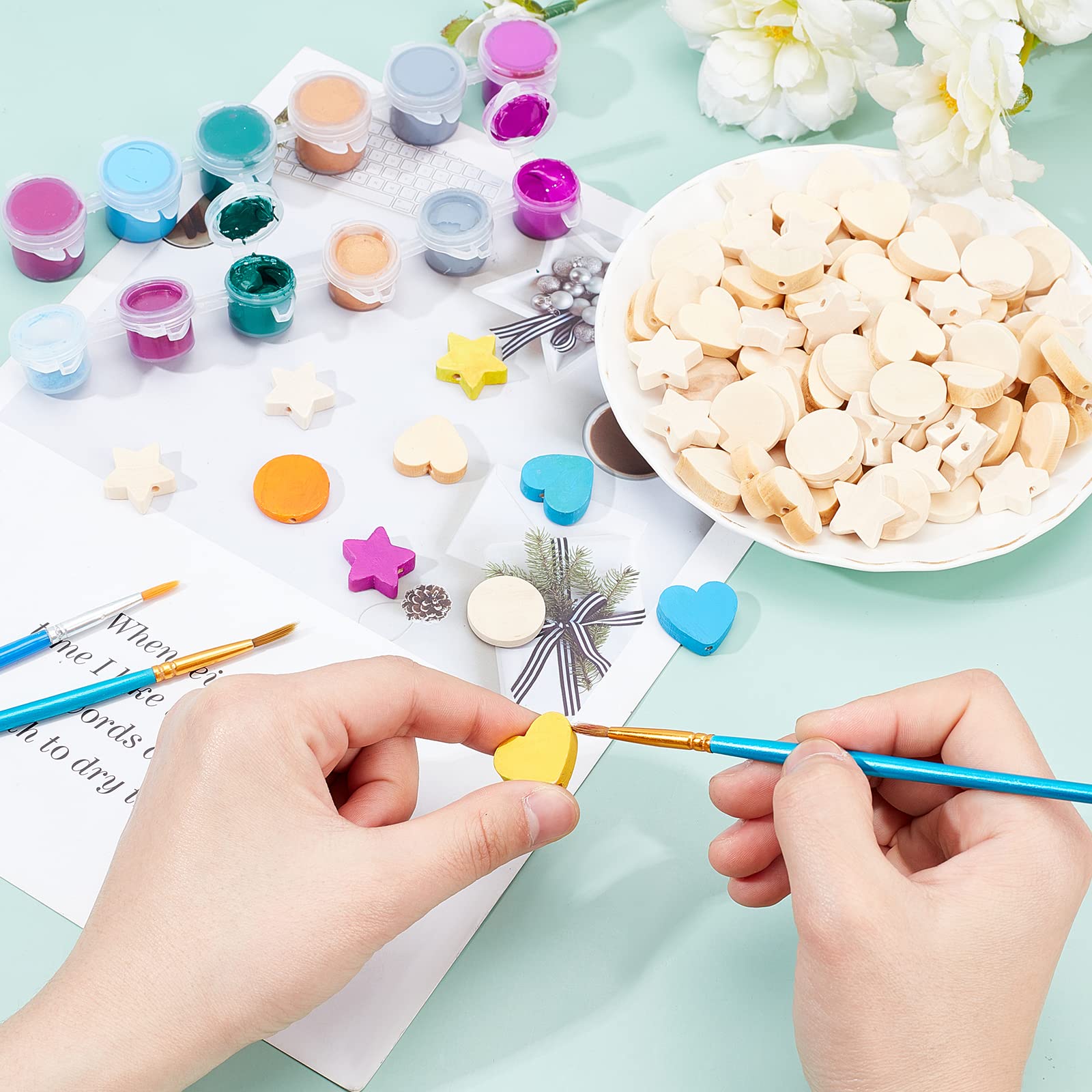 【幅広い用途】これらの木製ビーズは、手工芸品、その他のDIYプロジェクトの作成に適しています。