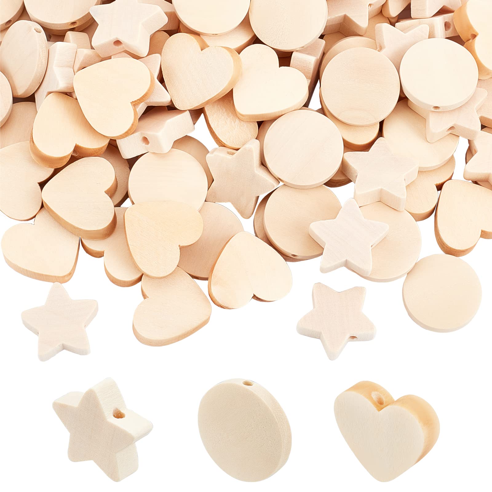 【特価】OLYCRAFT 150点 木製ビーズ 未塗装 9~20x20x5~6mm 穴1.4~3mm 天然木製ビーズ 星 ハート 円形ビーズ ウッドビーズ DIY ハンドメイド 手作り ジュエリー作りパーツ 手芸用ビーズ | GIGATERA
