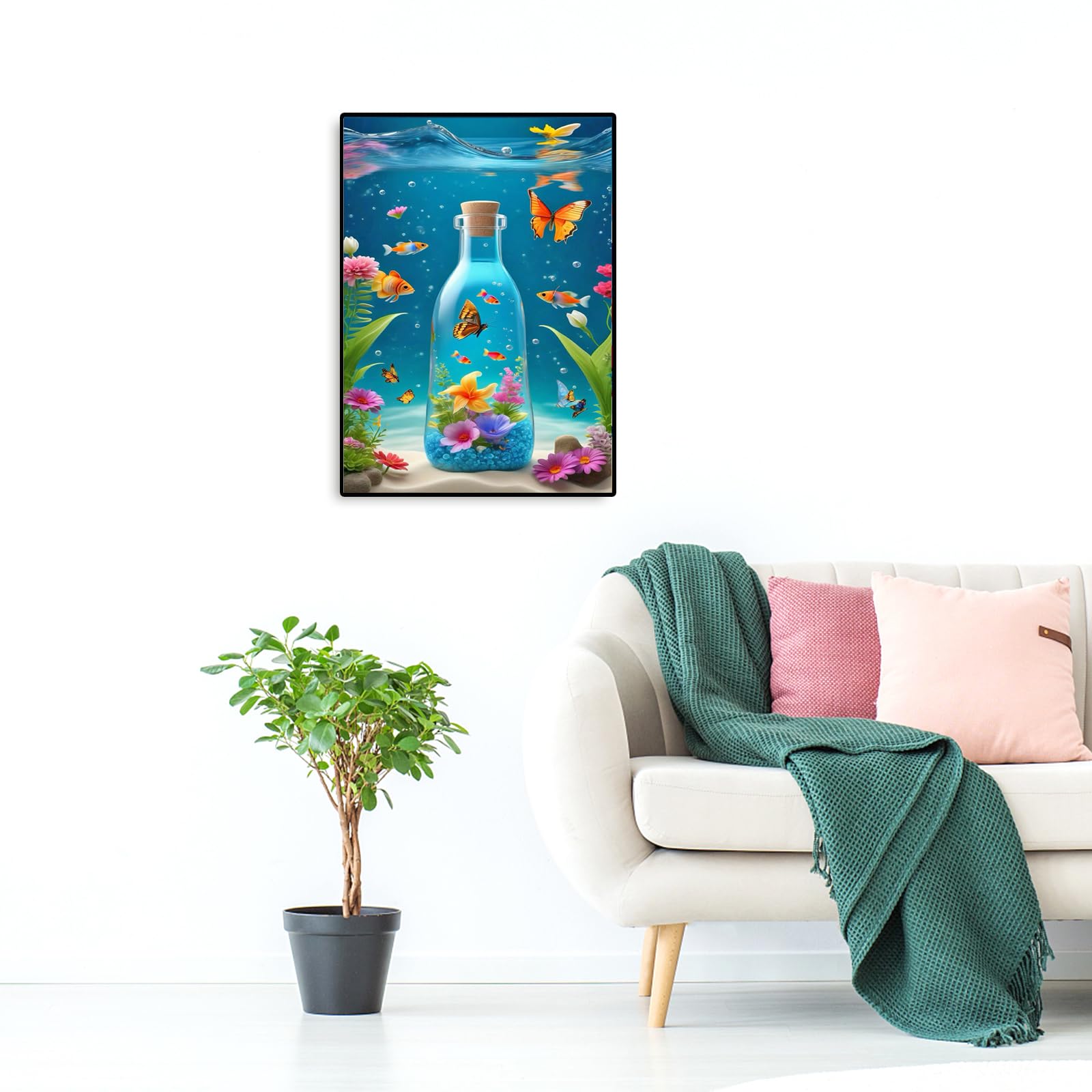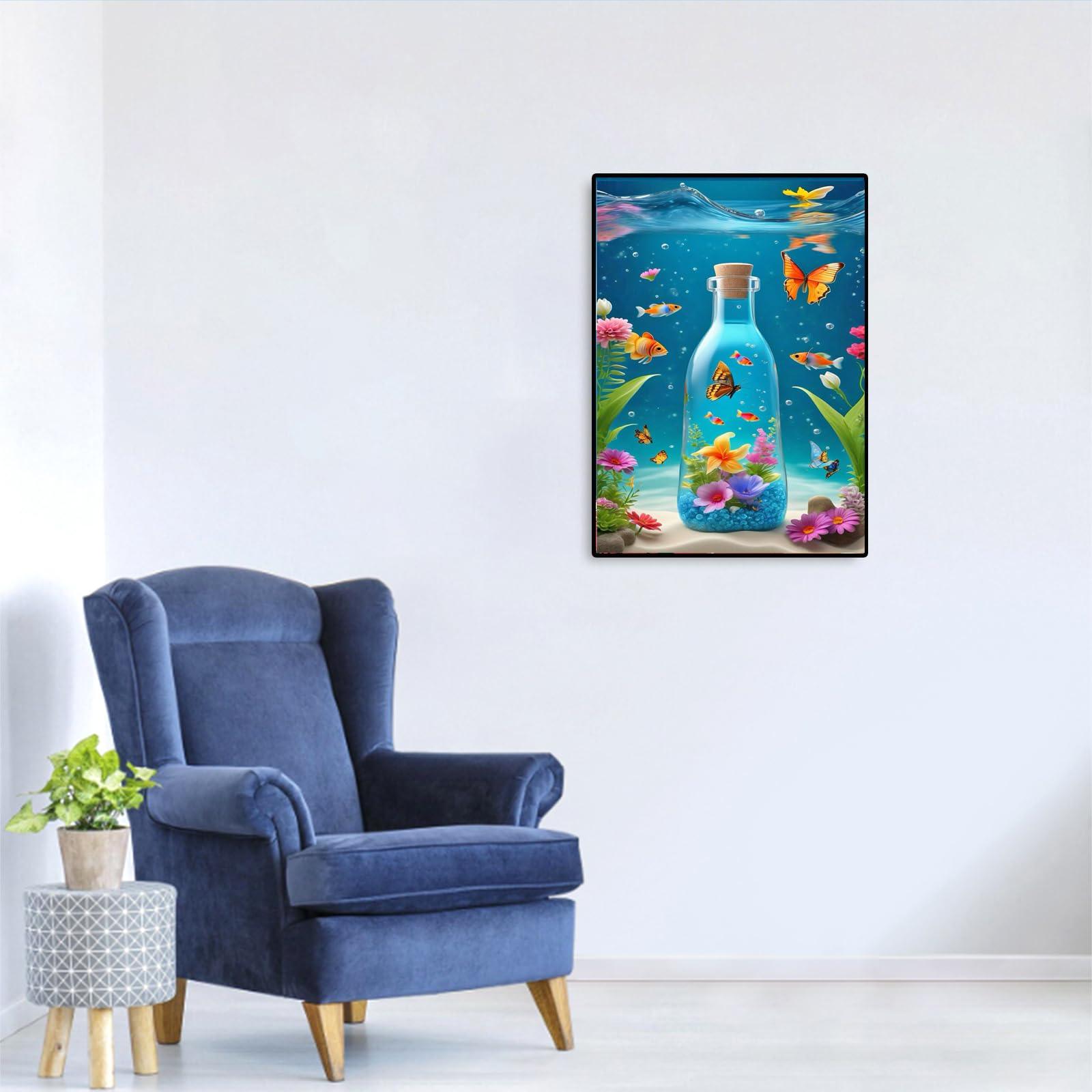 JISHSHAY ダイヤモンドアート キット 30x40cm ダイヤモンドアート 海 人気 ビーズアート 花 手芸キット 5D ダイヤモンドアート蝶 絵画キット 手作りキット ダイヤモンドアート 水中世界 DIY オーシャンブルーガラス瓶 全面貼り付けタイプ 大人と子供 趣味 キット 初心者 芸術品