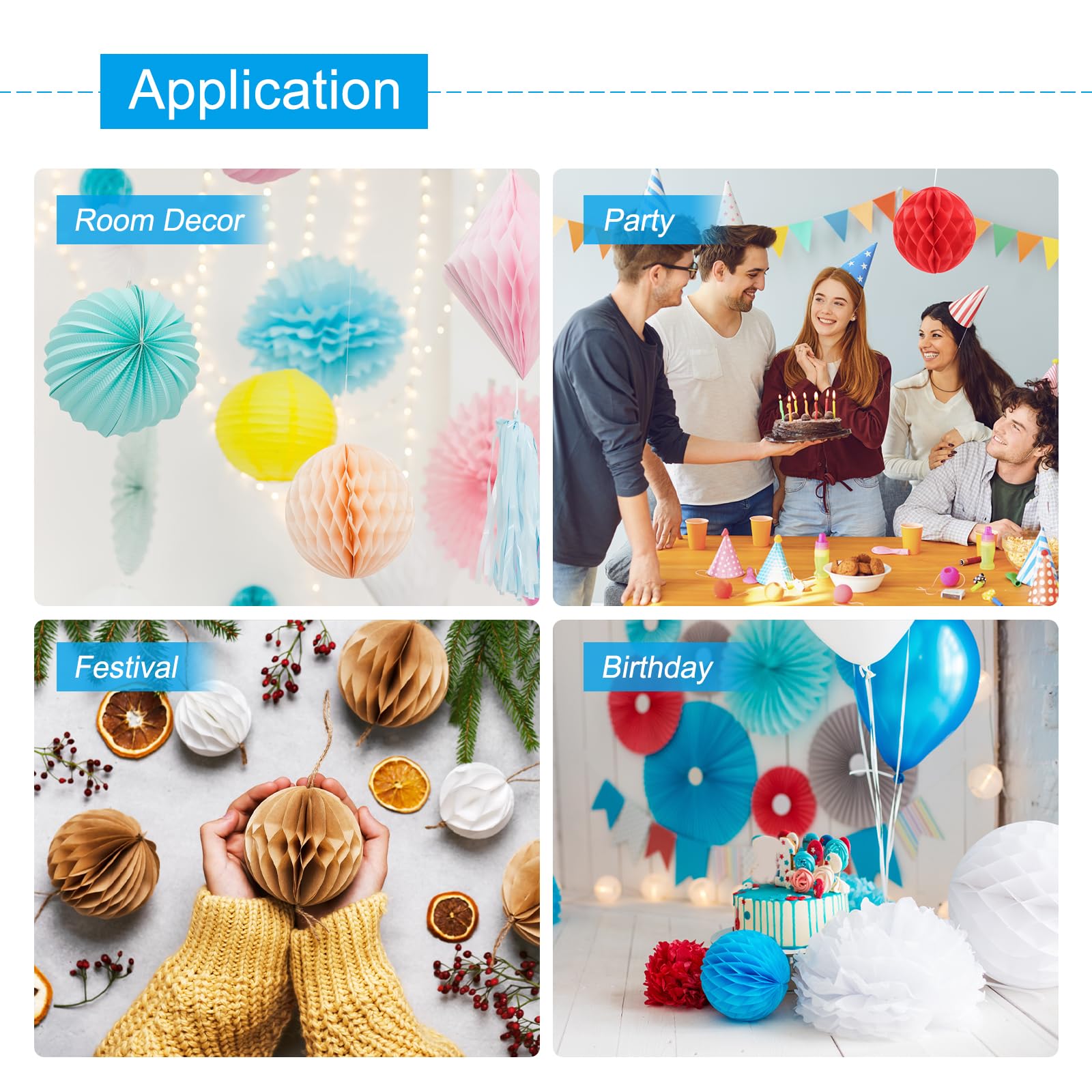 これらのハンギングペーパーボールは明るい色と美しい外観の丈夫なペーパーで作られています。破れにくく、形を保ちやすく、色あせしにくく、再利用可能です。