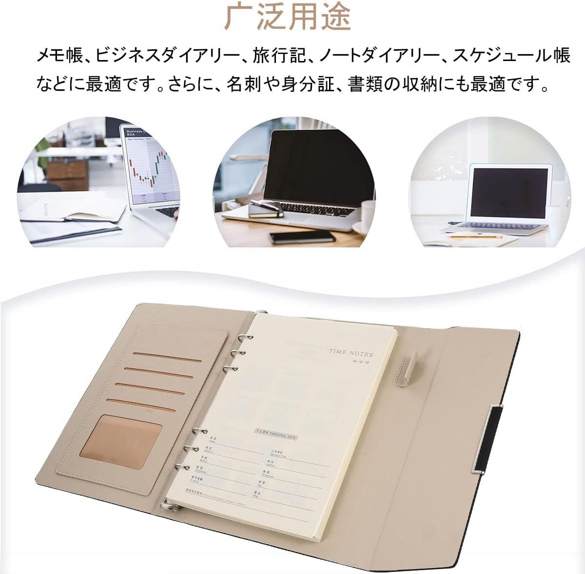 ?幅広い用途:メモ帳、ビジネスダイアリー、旅行記、ノートダイアリー、スケジュール帳などに最適です。さらに、名刺や身分証、書類の収納にも最適です。多機能なデザインと高品質な素材により、日常生活や仕事で欠かせないパートナーとなるでしょう。