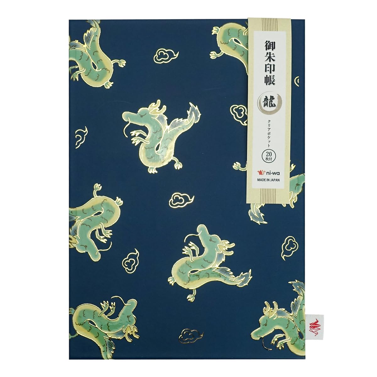 ポケット付き御朱印帳 龍 180×120mm 20ポケット 40ページ 1冊 追加ポケット10枚付き (小龍)