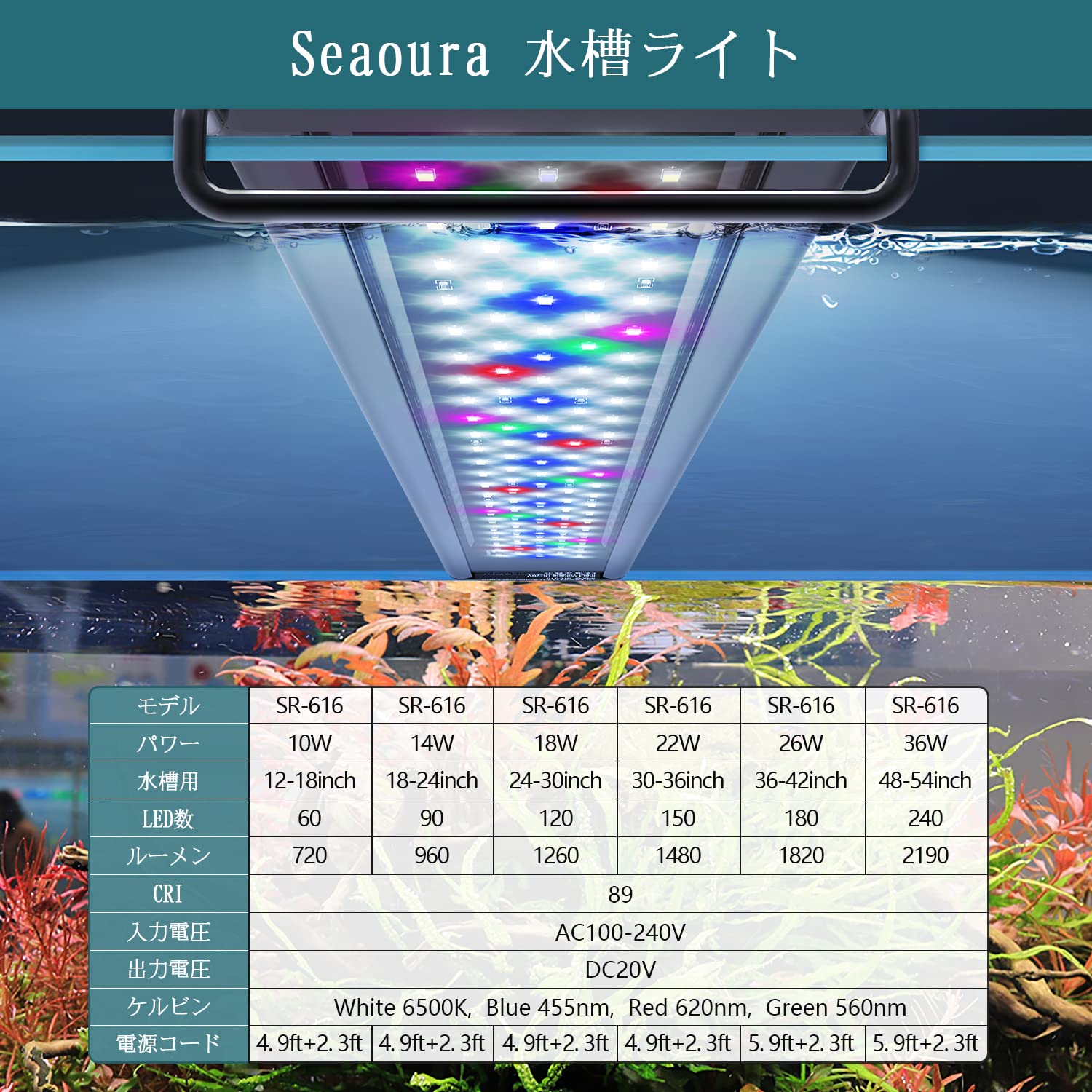 SEAOURA 水槽ライト 30-45cm水槽適用 LEDアクアリウムライト 水槽照明 3つモード 10段階の明るさ調整可能 6H/10H/12Hタイマー 自動オン/オフ 伸縮可能 5列LED 白/赤/ピンク/緑LED付 水草、熱帯魚や観賞魚など明るい光を与え 省エネ 長時間利用可能 (10W:30-45cm)
