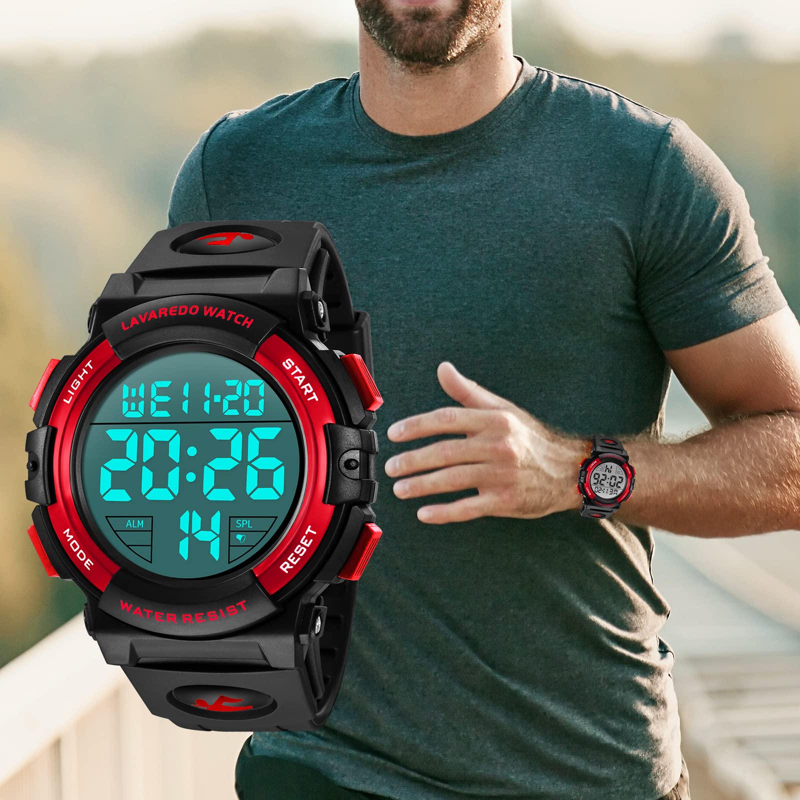 ?[スポーツ腕時計]ファッションな外観デザインとスポーティーなダイヤルスタイル、スポーツウォッチとしては良い選択です。大きな文字盤とLEDバックライト付き、暗闇の中でも正しい時間を示し、読みやすいです。大きなデジタル表示と発光デザインで、高齢者でも使いやすい。ランニング、登山、釣りなどのアウトドアスポーツと屋内スポーツの両方に最適です。