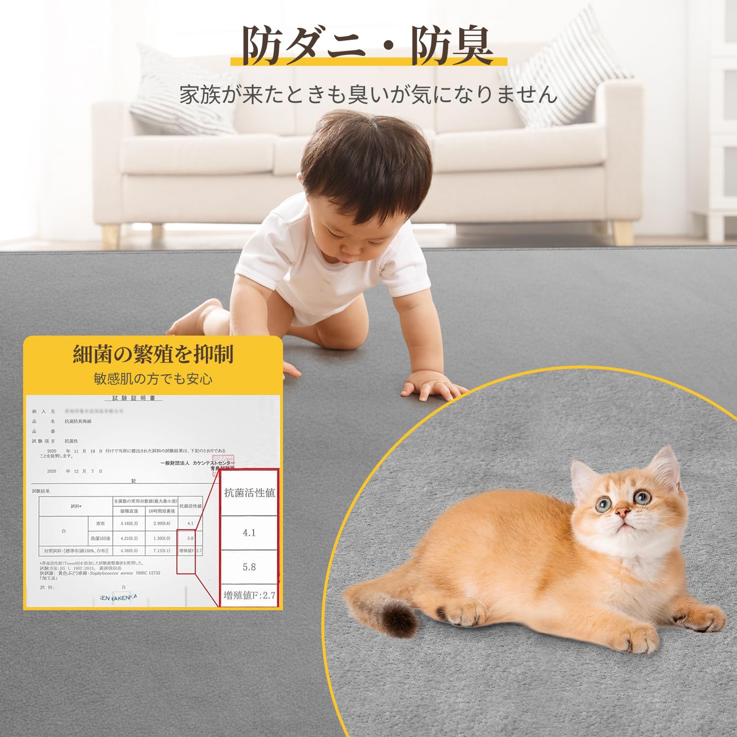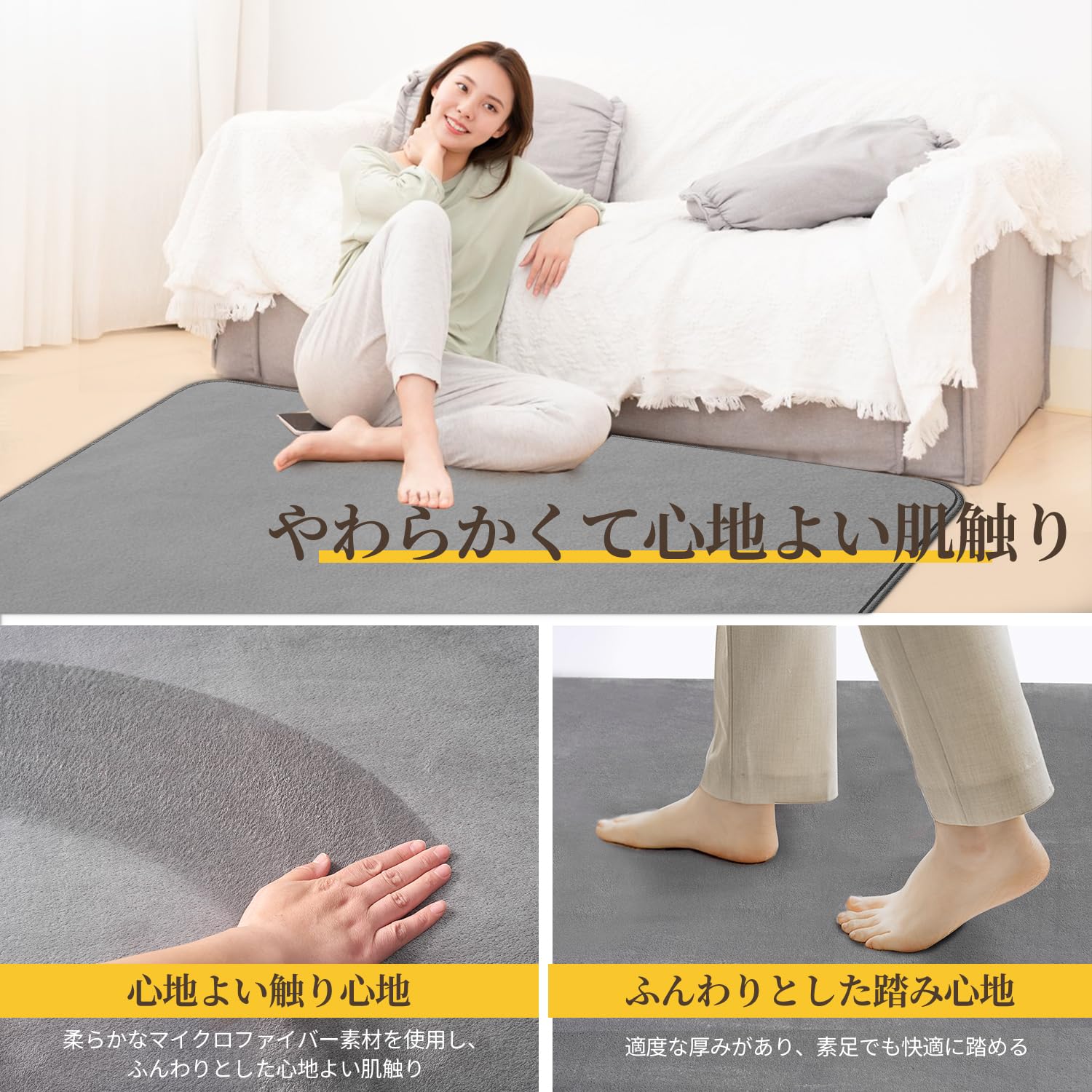 【オールシーズンお楽しみに】絨毯(じゅうたん)表面は細く柔らかなフランネル生地を高密度に敷き詰めることで、さらさら、ふわふわして優しい肌触りを実現します。極細マイクロファイバーは軽くて、保温性や速乾性も優れているので、夏はサラッと冬はあたたかい!床暖房・ホットカーペットも対応し、底冷えする季節も足元がぽかぽか暖かいです。