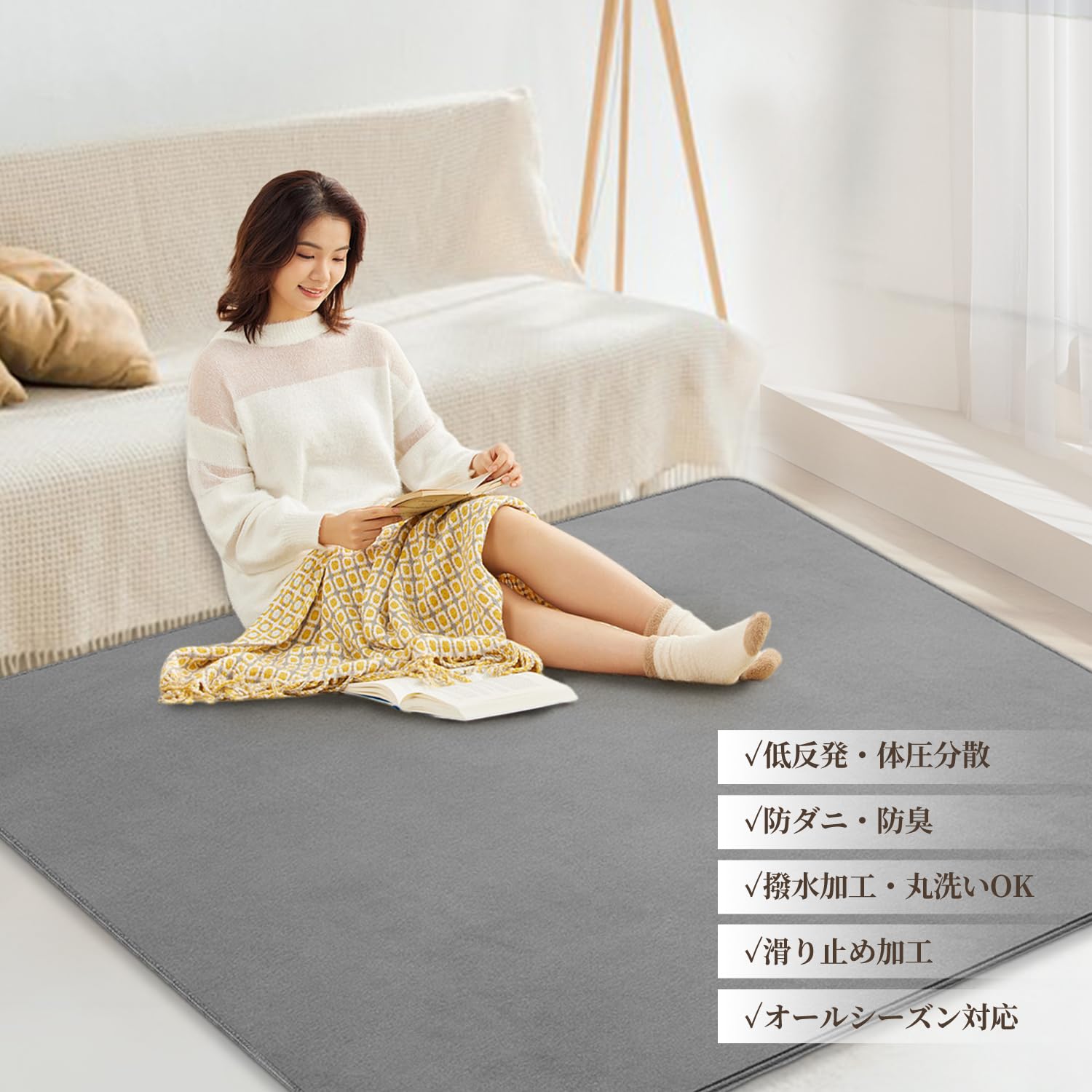 カーペット ラグ ラグマット 1.5畳 厚手 15 mm 130x185 cm 低反発ラグ 洗える じゅうたん 滑り止め付 絨毯 ホットカーペットカバー 防ダニ 抗菌 防臭 防音 撥水加工 オールシーズン対応 床暖房ホットカーペット対応 グレー