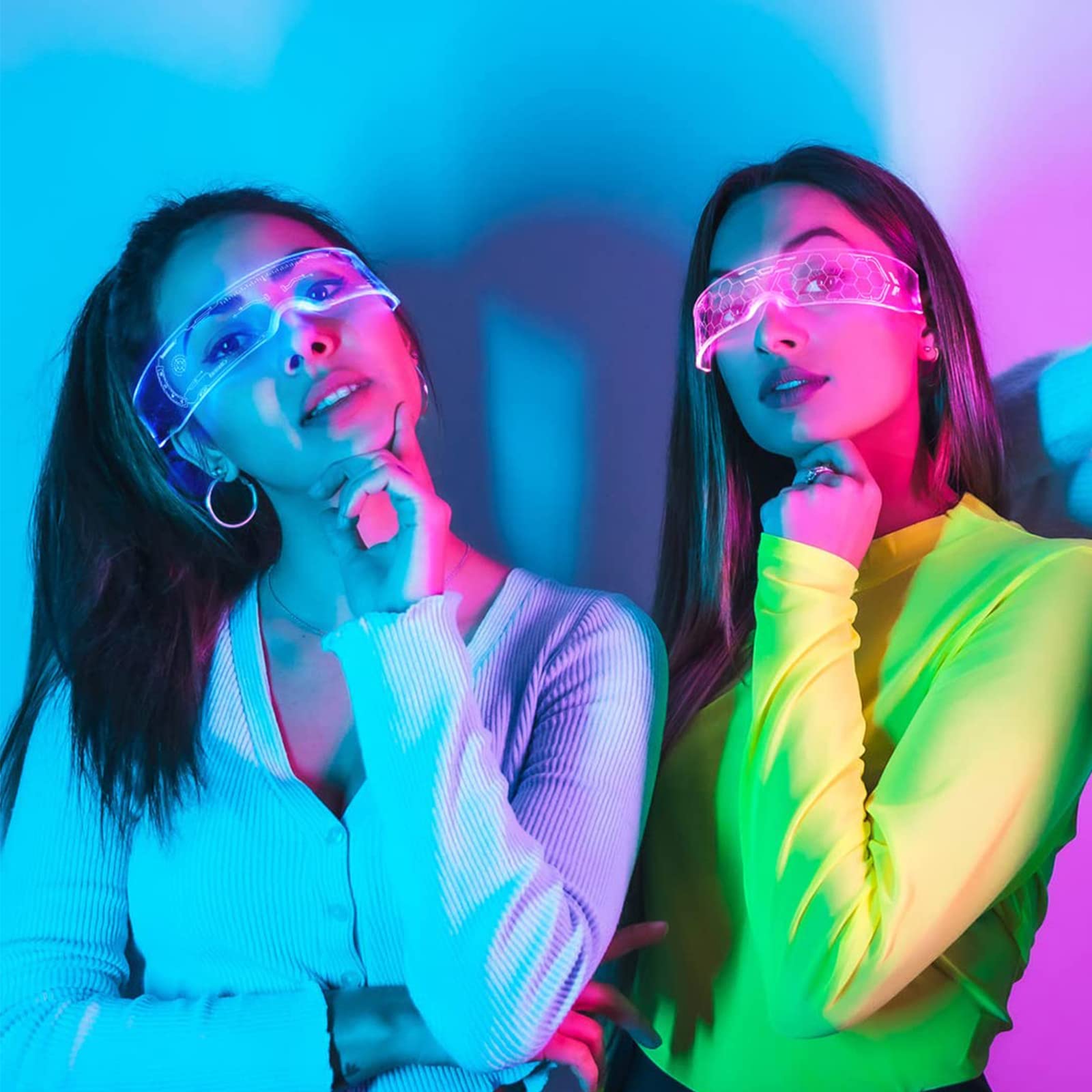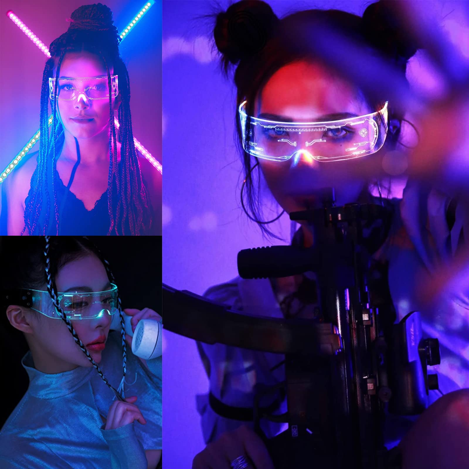 【数量限】[Jinnal] サイバーパンク 光る メガネ 未来 7色 LEDグラス おもしろめがね パーティーグラス コスプレ おめん サングラス ミライのメガネ 面白メガネ 撮影用小道具 光るグラス 11モード | GIGATERA