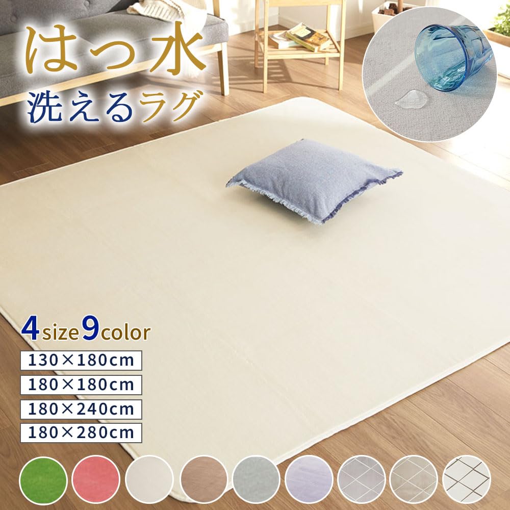 ベルーナ(BELLUNA) ラグ カーペット 厚手 3畳 2畳 1.5畳 洗える 撥水 はっ水機能付き オールシーズン ホットカーペット対応 床暖房対応 快適 軽量 ウォッシャブル 滑りにくい おしゃれ (553674-010)